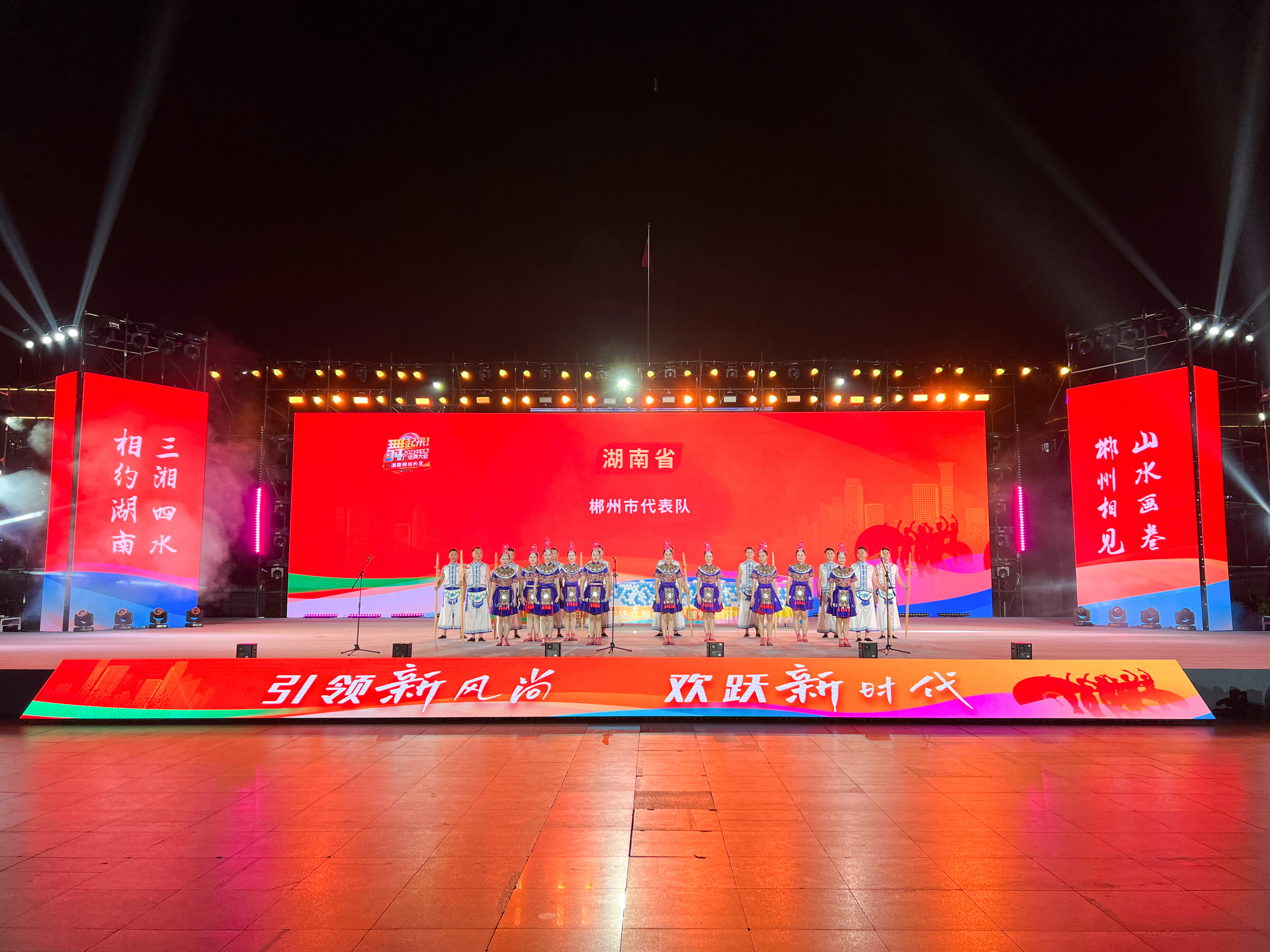 9月26日晚,2023年全国广场舞展演——湖南郴州片区广场舞大会在五岭广场欢乐开舞,来自湖南、福建、江西、广东、海南、广西六地的19支队伍1200多名广场舞爱好者齐聚郴州,共同开启一场激情洋溢的群众文化盛会。
