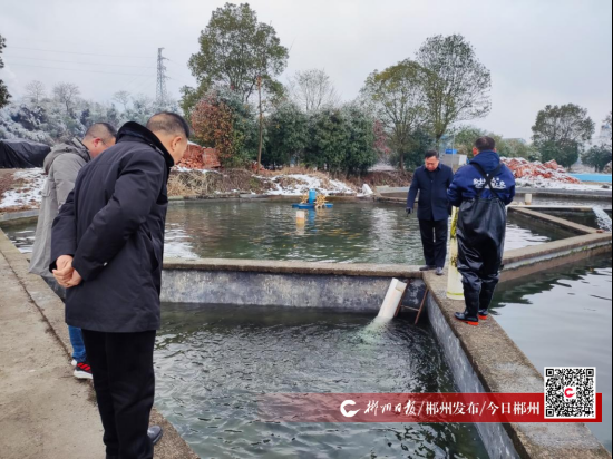 受寒潮影响,我市持续低温降雨天气,直接影响农业生产。为及时指导各地做好应对措施,减少渔业经济损失和安全生产隐患,市畜牧水产事务中心利用手机短信、微信群和电子屏幕等方式宣传防灾减灾知识,发布中短期灾害天气预报预警。市畜牧水产事务中心还发布了《冬季水产养殖防范低温雨雪冰冻灾害天气技术指引》,并派渔业技术人员深入资兴水产良种场、苏仙湖源渔业等养殖一线现场指导,提醒各水产养殖基地要密切关注天气预警预报,做好应对断电、缺氧和极端低温天气等准备措施,加强日常管理,科学投喂饲料,及时破雪除冰,做好病害防控,适时捕捞上市,将天气带来的影响损失降到最低。