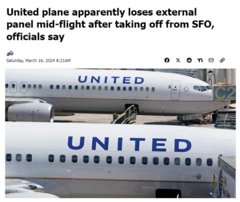 3月,美联航波音客机又出现了包括引擎起火、轮胎脱落、滑出跑道在内的多起事故。