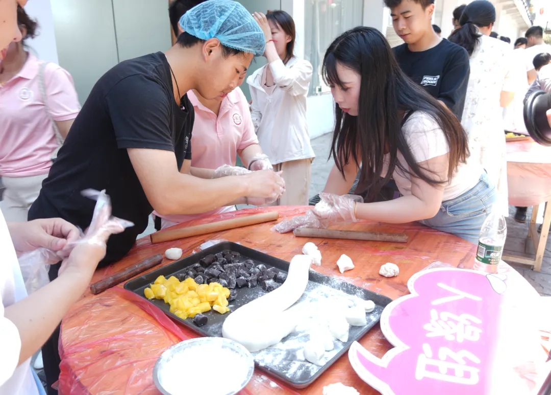 活动最后,青年们来到美食街体验包子制作,每人包9个包子,意味着长长久久,愿幸福传递,温情永存。