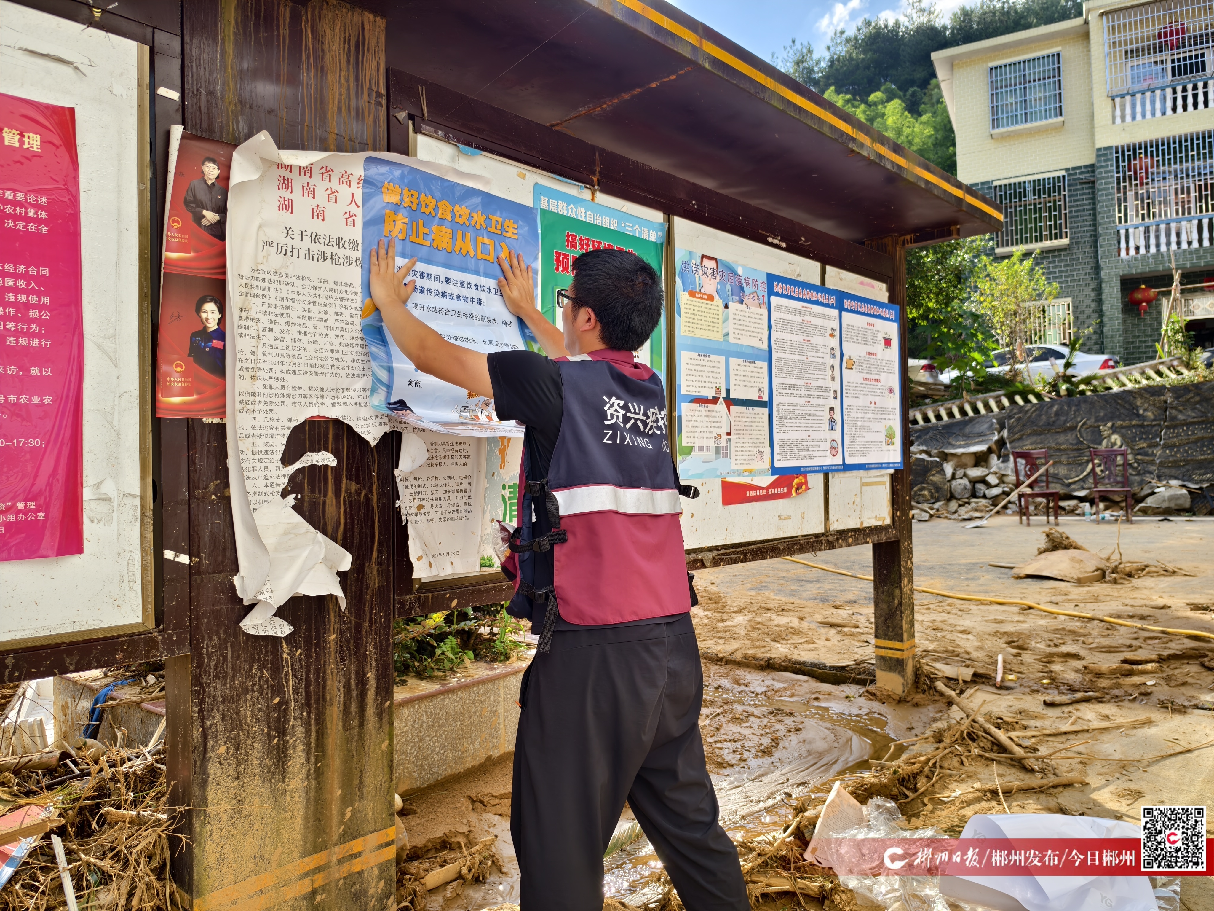 7月29日,段佳斌与同事接到命令后,第一时间赶赴资兴市黄草镇东坪片区灾区一线。