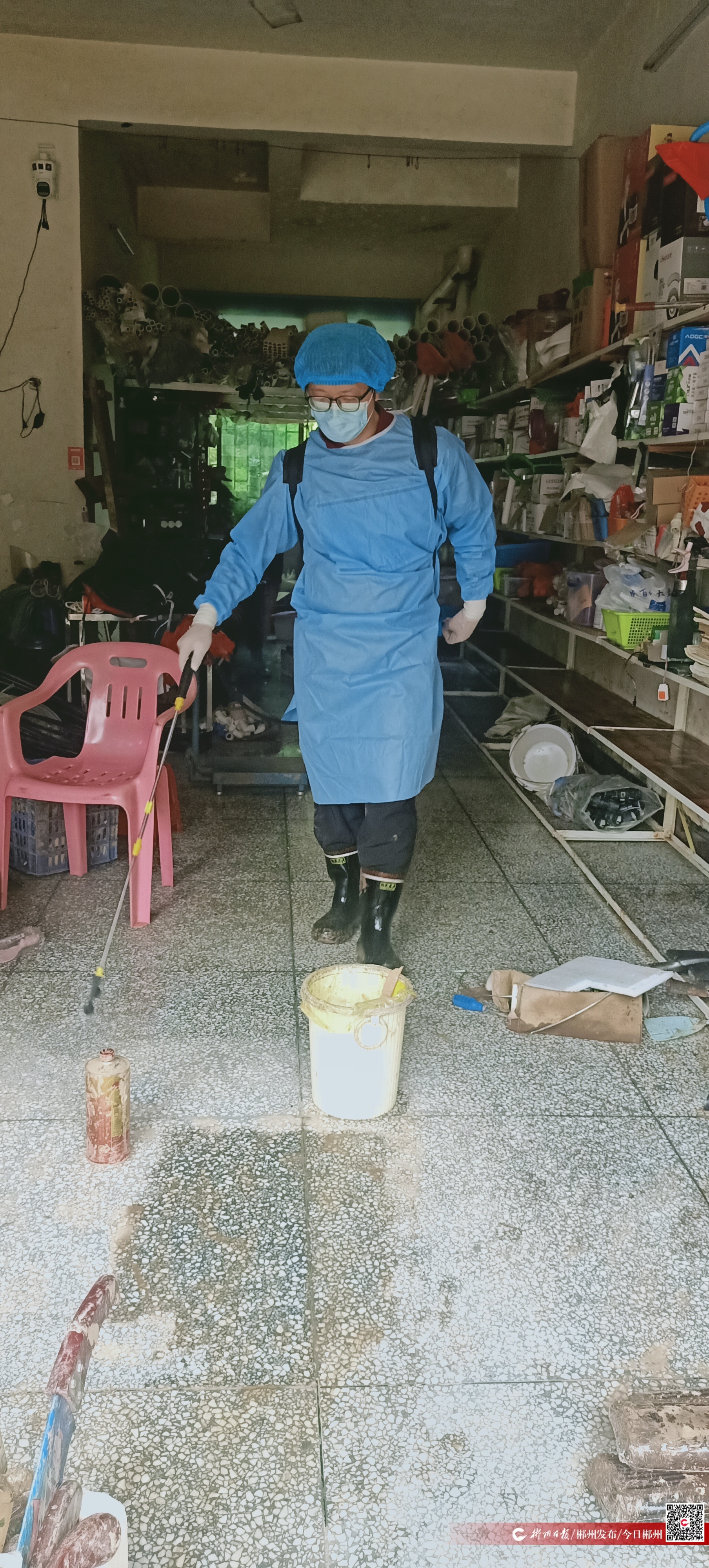 每天背着十几公斤重的喷雾器,段佳斌和同事一边走、一边看、一边消杀,忙碌在防疫消杀的一线。