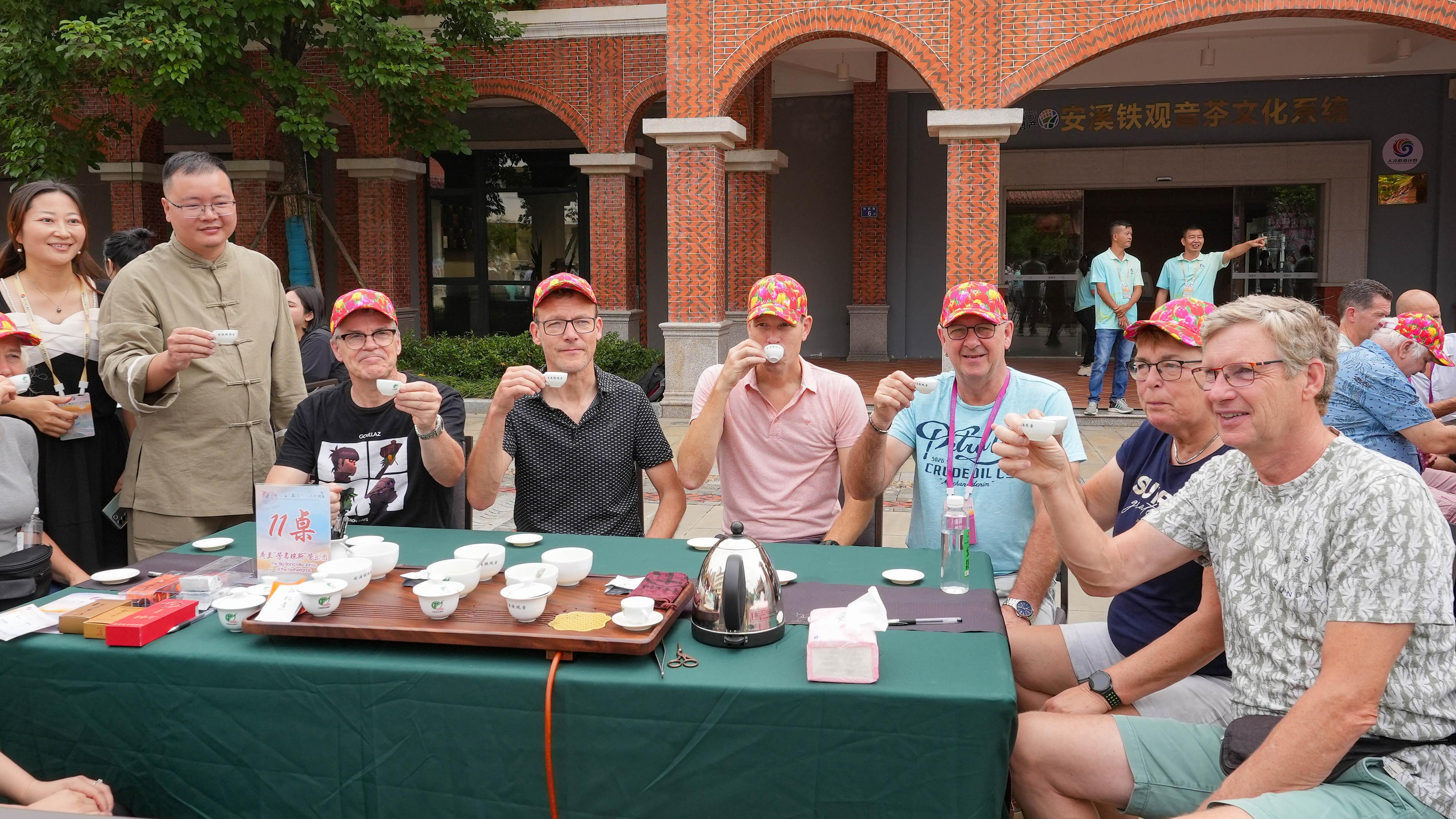 2023年10月4日,福建泉州,外国人品中国茶。
