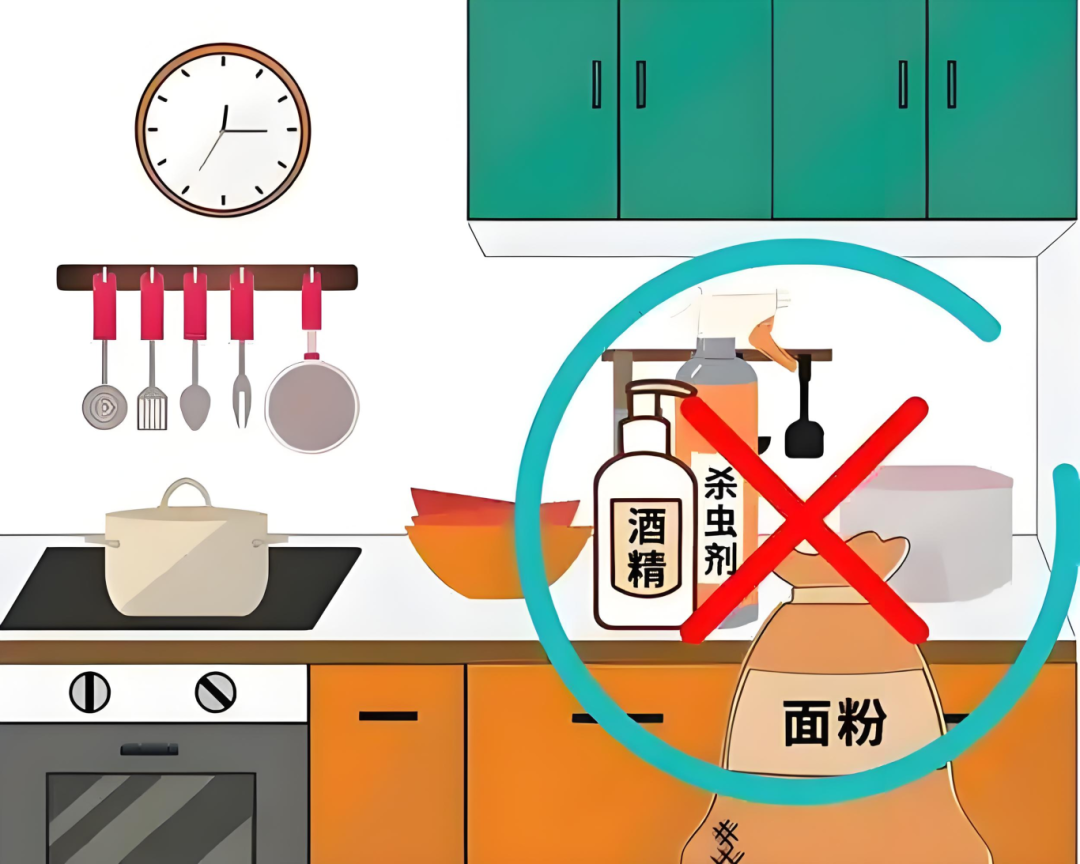 灶具或钢瓶旁边,如果放有易燃物品,应尽快进行清理。杀虫剂、花露水、面粉等喷雾型易燃品一定不能在燃气灶周围使用。