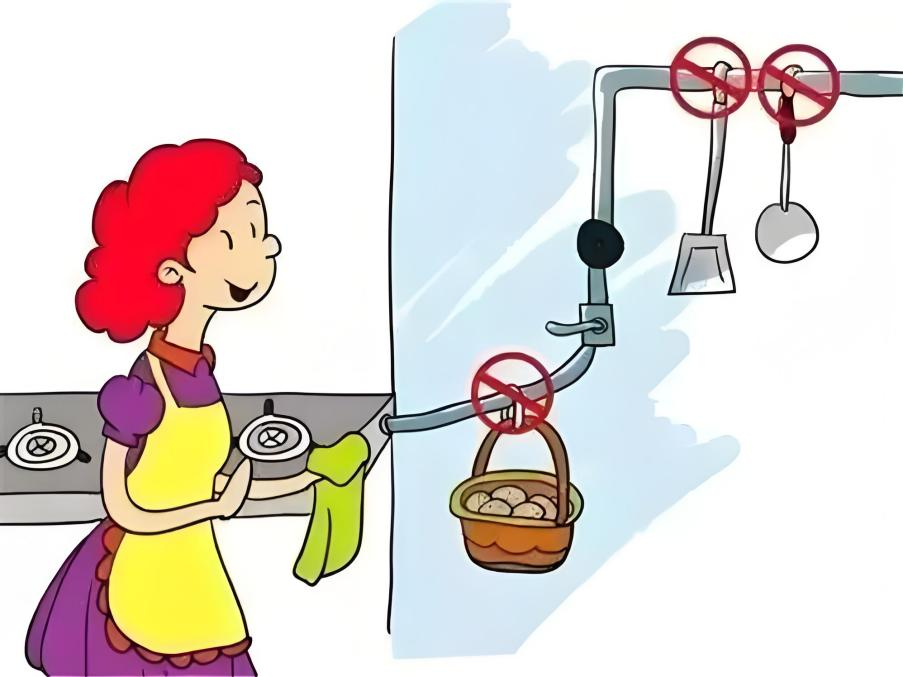 无论是室内燃气管道,还是各种燃气胶管,都不能承重或是储物。悬挂杂物可能导致管道变形,严重的话会造成燃气泄漏。