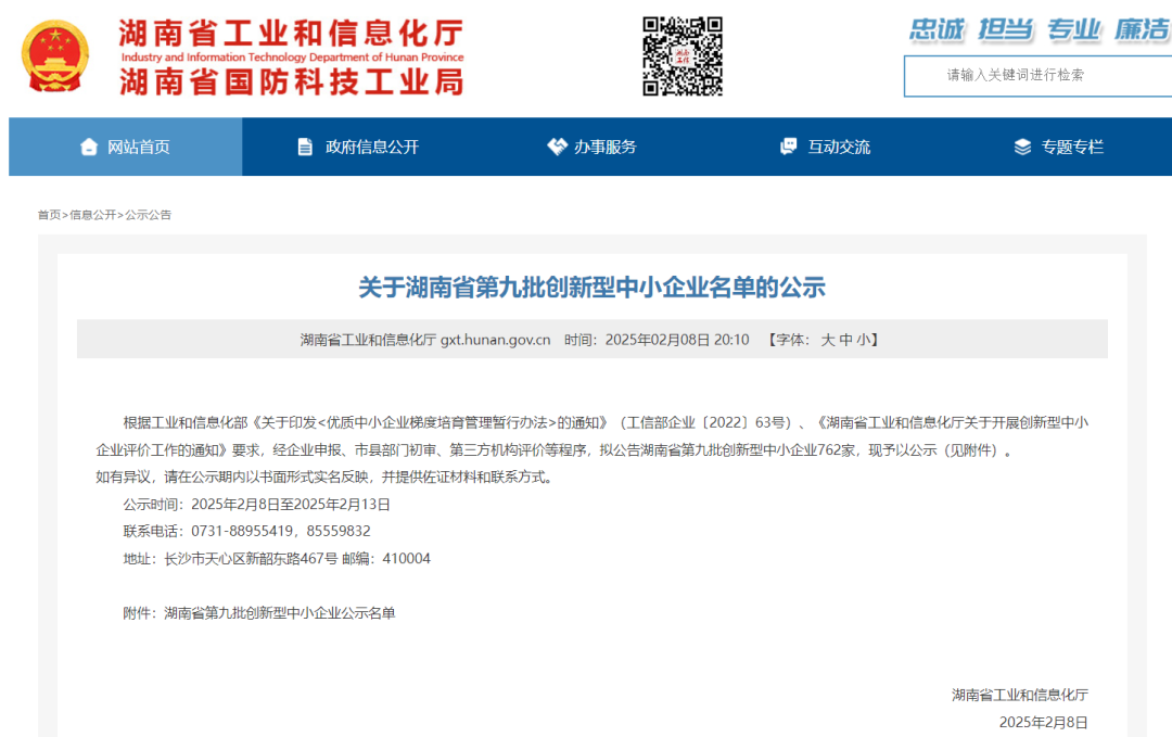 湖南省第九批创新型中小企业公示名单