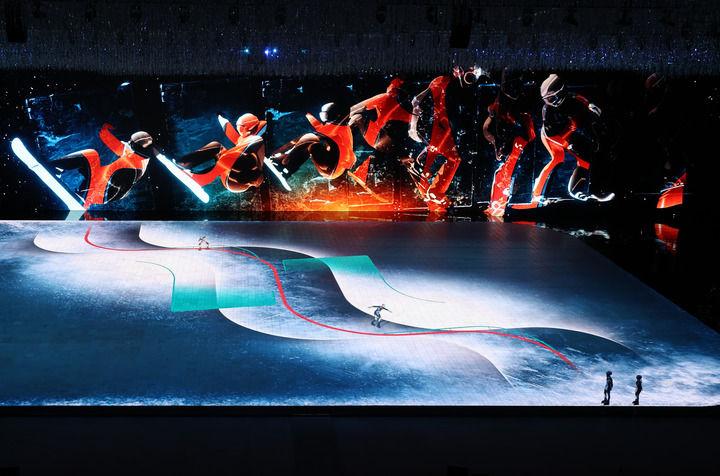 作为下一届亚冬会举办城市,来自沙特阿拉伯未来新城的文艺表演舞姿曼妙,鼓点欢快,洋溢着浓郁的西亚风情。顷刻间,整个舞台化作冰雪运动场,光影穿梭的运动员号召着下一次相约,在现场掀起新的高潮。