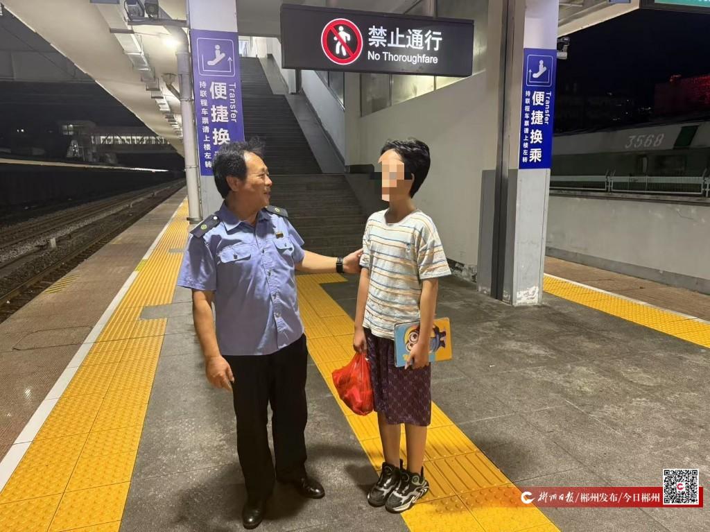 当天21时许,郴州火车站站台上,一名客运员在巡查时发现一名男孩在站台上徘徊,神色十分慌张。客运员上前询问后得知,男孩与父亲从广州北站乘坐K356次列车前往湘乡,因父子二人席位不在同一车厢,列车抵达郴州火车站时,男孩误以为已到达目的地,便独自下了车。由于男孩没带手机,无法联系父亲和家人,只能在站台上茫然等待。