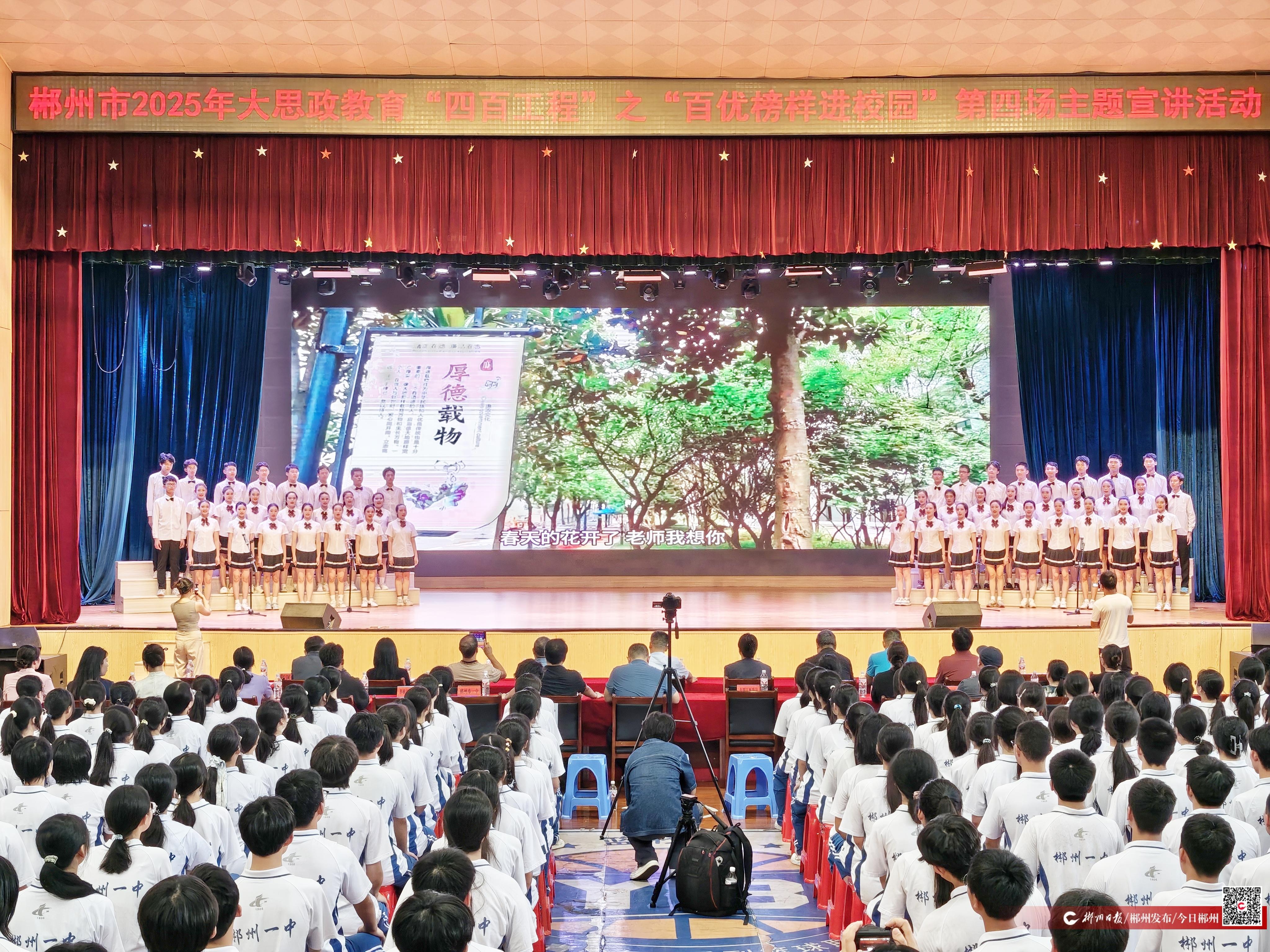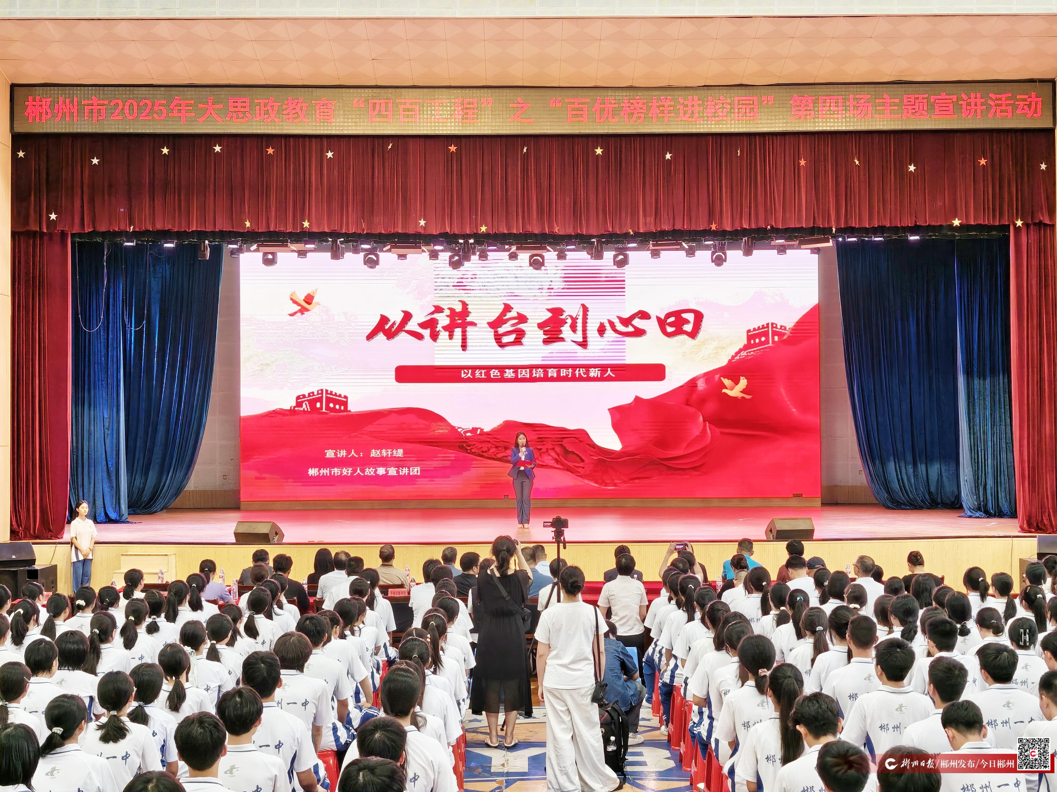 9月9日,在第41个教师节来临之际,郴州市2025年大思政教育“四百工程”之“百优榜样进校园”第四场主题宣讲活动在郴州市第一中学体育馆举行。