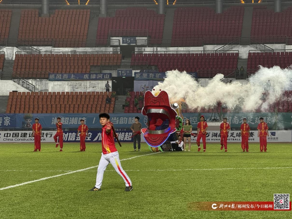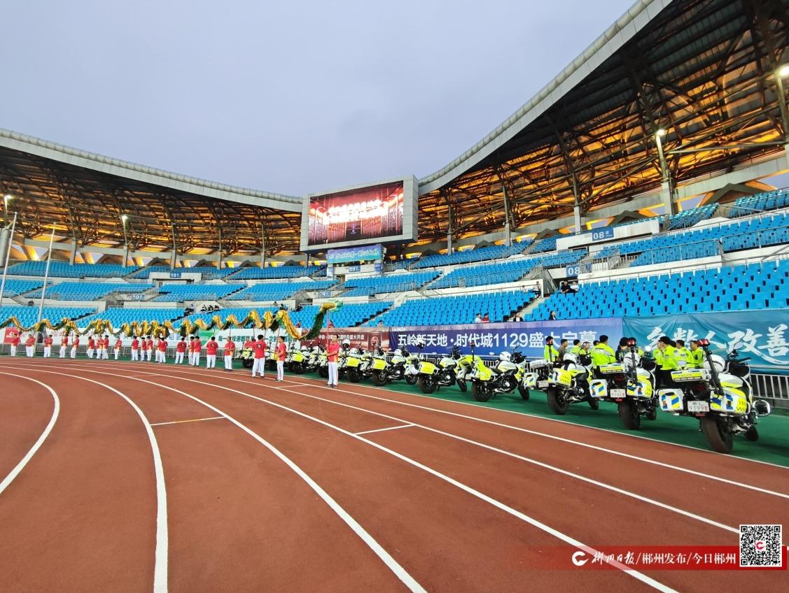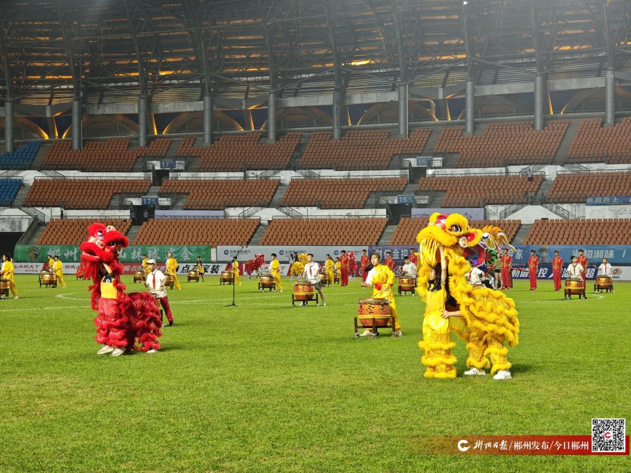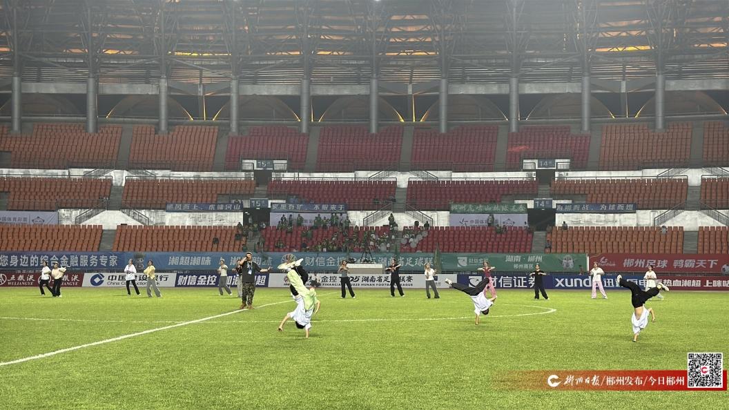9月19日晚,郴州市体育中心灯火通明,2025年“湘超”联赛郴州赛区主场彩排正在紧张进行。演出团队对表演动作、走位和音乐配合进行精细打磨,确保在郴州队与长沙队的焦点战前为观众呈现最精彩的暖场演出。