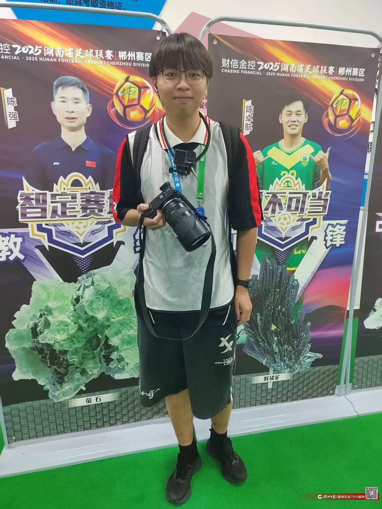 9月20日晚,“湘超”迎来一场焦点之战——郴州队主场作战对阵长沙队。为了看这场比赛,江西科技学院新闻学专业大二学生唐一鸣周五放学后,坐了八小时火车硬座赶回郴州,打算用自己的镜头捕捉郴州队在绿茵场上的风采。