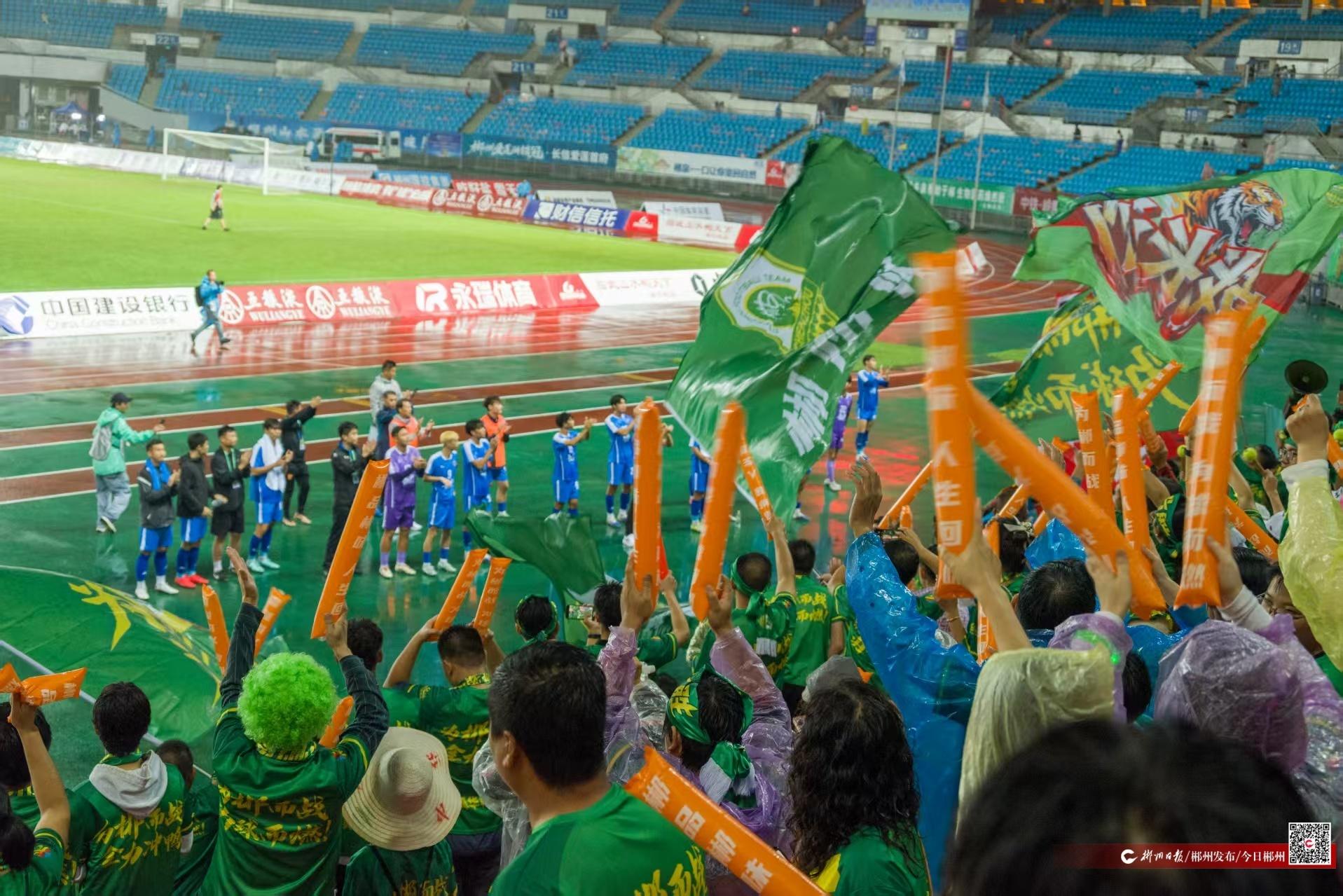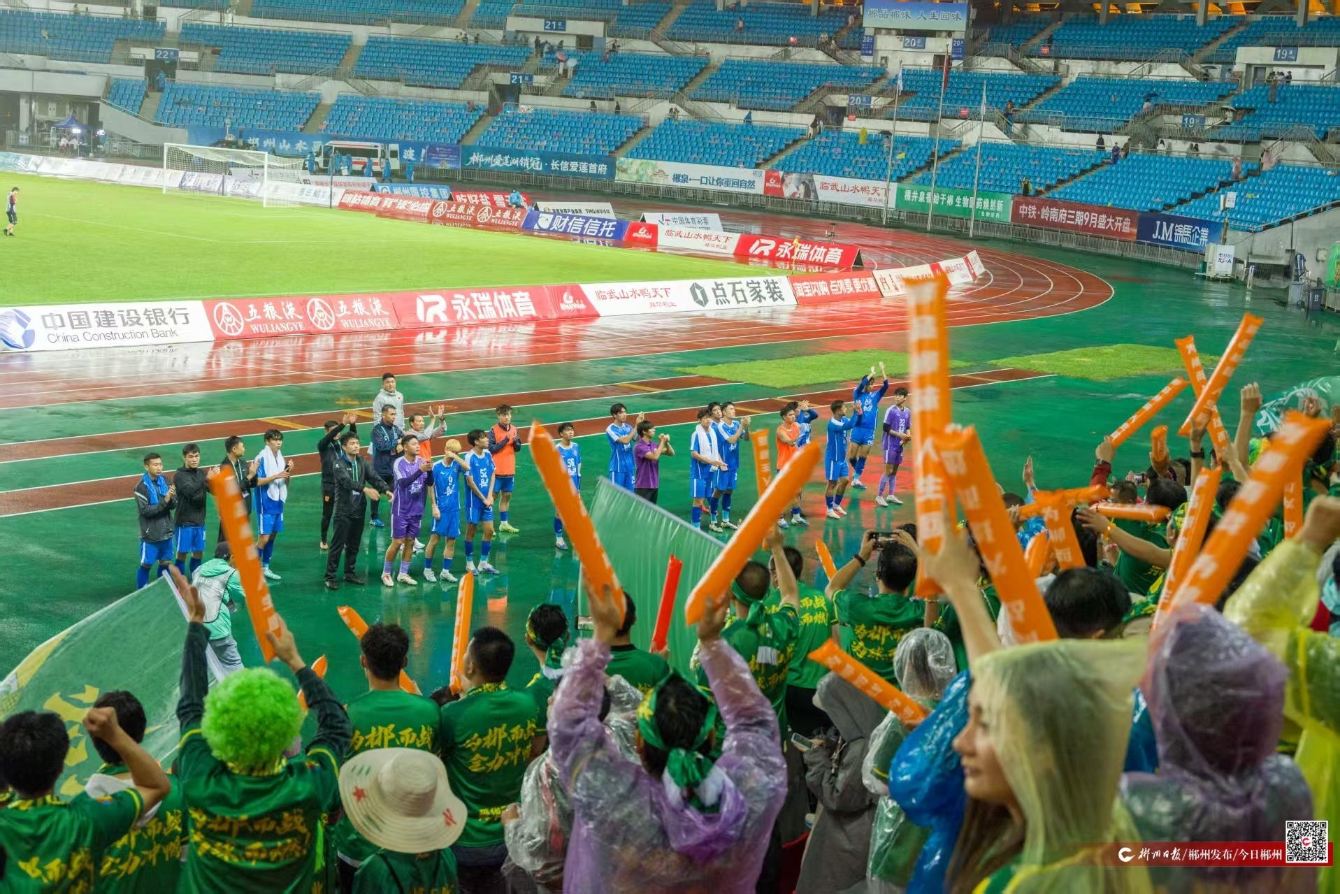 9月20日晚,“湘超”联赛郴州队对阵长沙队的比赛结束后,两队球员集体来到赛场边,向球迷们鞠躬致谢。与此同时,球迷们也向两队球员致以掌声:“谢谢你们带来的精彩比赛!”