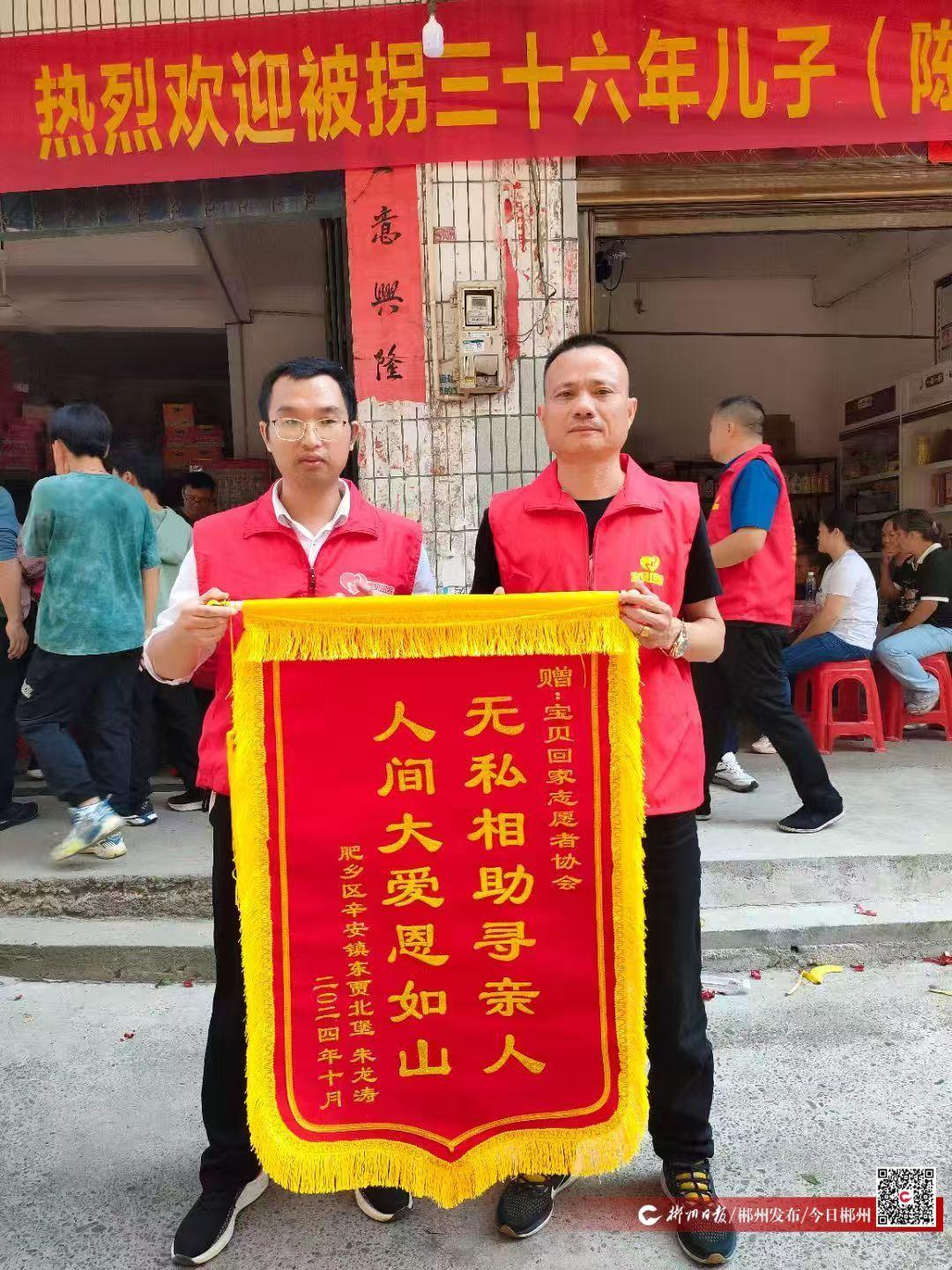 为帮助永州双牌县周芝桂寻找被拐36年的儿子陈质军,他多次自费辗转全国多个省市,最终在河北邯郸找到线索,于2024年10月帮助一家人团聚。在嘉禾县行廊镇,他为雷幼林、邓久风夫妇寻找被拐18年的儿子雷小飞,多次自费奔波5个省,最终在广东汕头找到孩子。