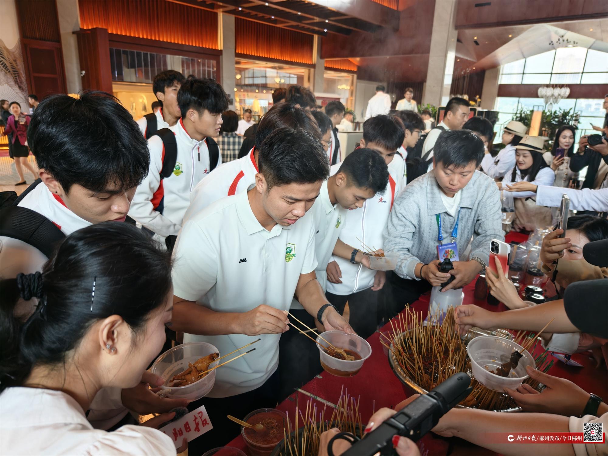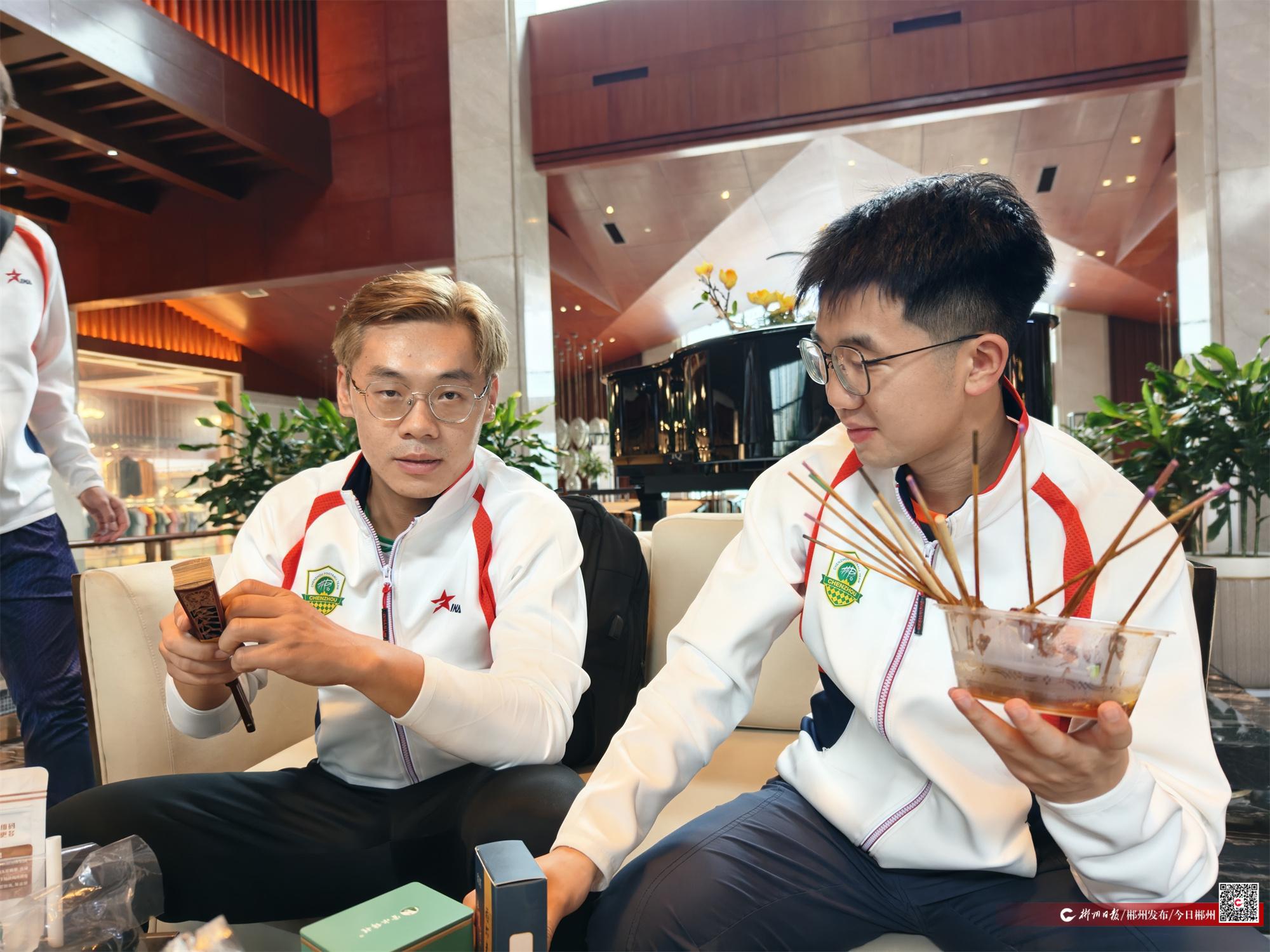 麻辣烫、甜酒糯米浆……9月26日下午,首次客场出征的郴州队抵达益阳后,各种美食和伴手礼就带着热忱送到了郴州队球员手里。