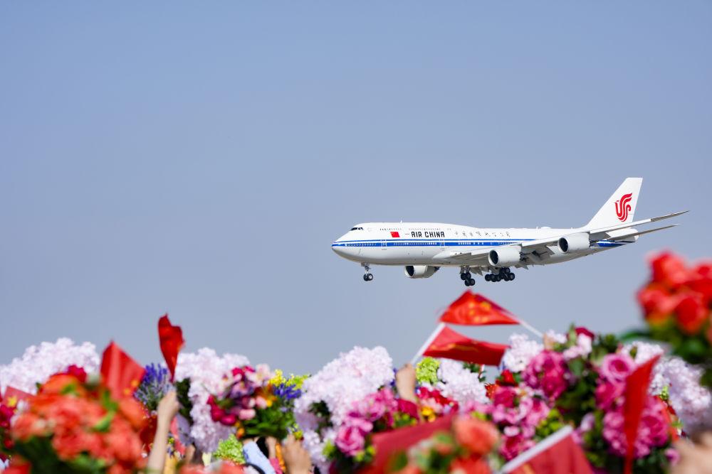 机场到住地沿途,花团锦簇、彩旗飘扬。人群如潮水涌到道路两旁,挥动的手臂与旗帜汇成海洋,一颗颗心激动澎湃。习近平总书记向沿途群众频频挥手、亲切致意。