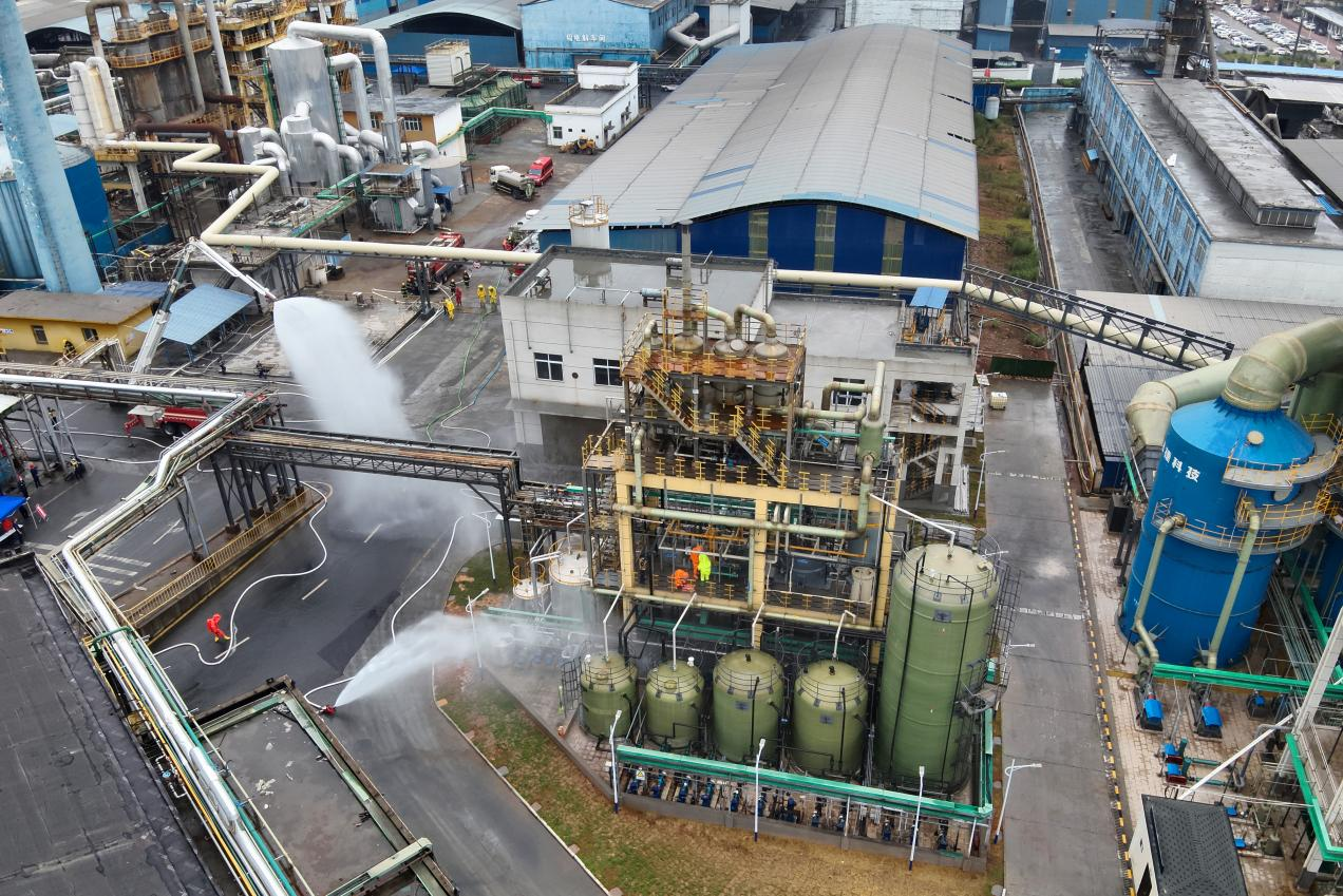9月25日,郴州消防救援支队在湖南白银股份有限公司综合产业园开展化工企业灭火救援熟悉演练。