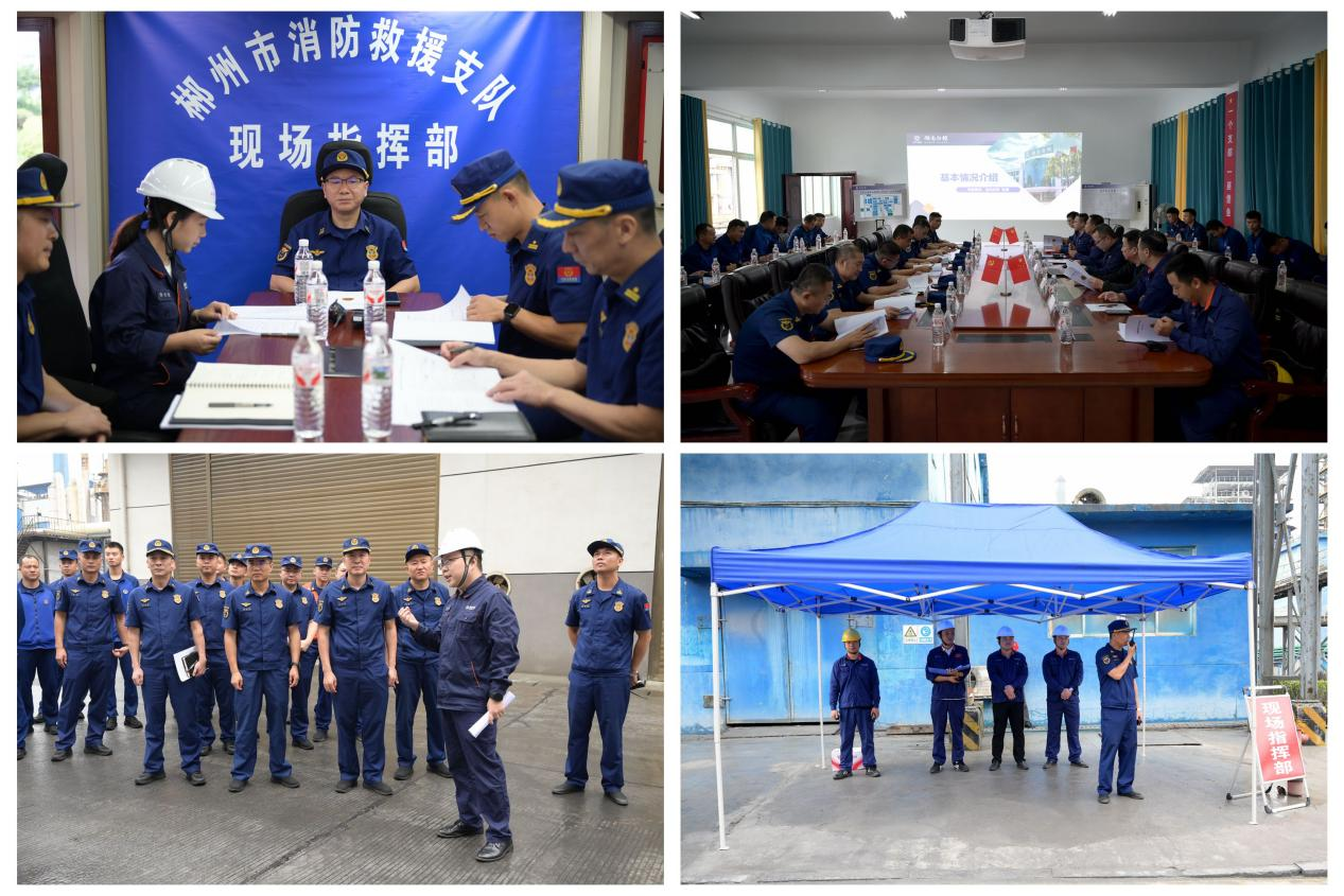 演练前,企业负责人介绍了单位基本情况。在技术专家的带领下,参演各单位代表对企业工艺流程、厂区消防设施配备等情况进行实地熟悉。随后,演练以全要素实战拉动、全过程实时观摩、全过程现场讲解的