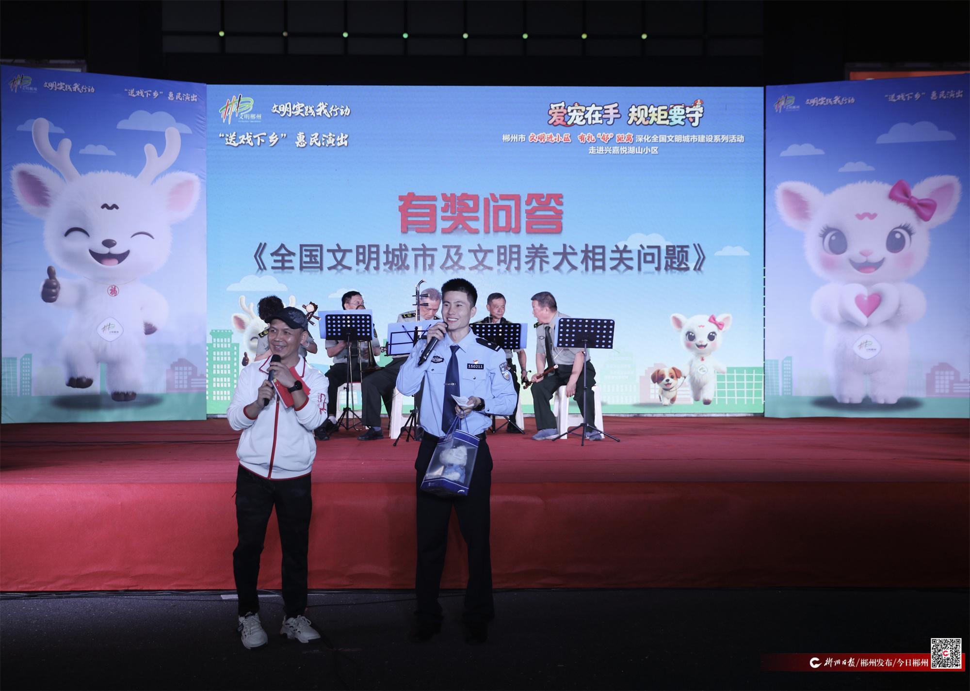 这可不是一场普通的宠物聚会,而是郴州市“文明进小区 有礼‘邻’距离”系列活动的第四场,主题正是“爱宠在手 规矩要守”。市公安局的民警带来的不是生硬的条例解读,而是如何安全牵绳、如何办理犬证、如何及时清理粪便等实操指南;宠物医生现场设摊,提供简单的义诊和养护咨询;而最有趣的莫过于文明养宠知识抢答,大人小孩争相举手,在欢声笑语中把文明规范记了个牢。