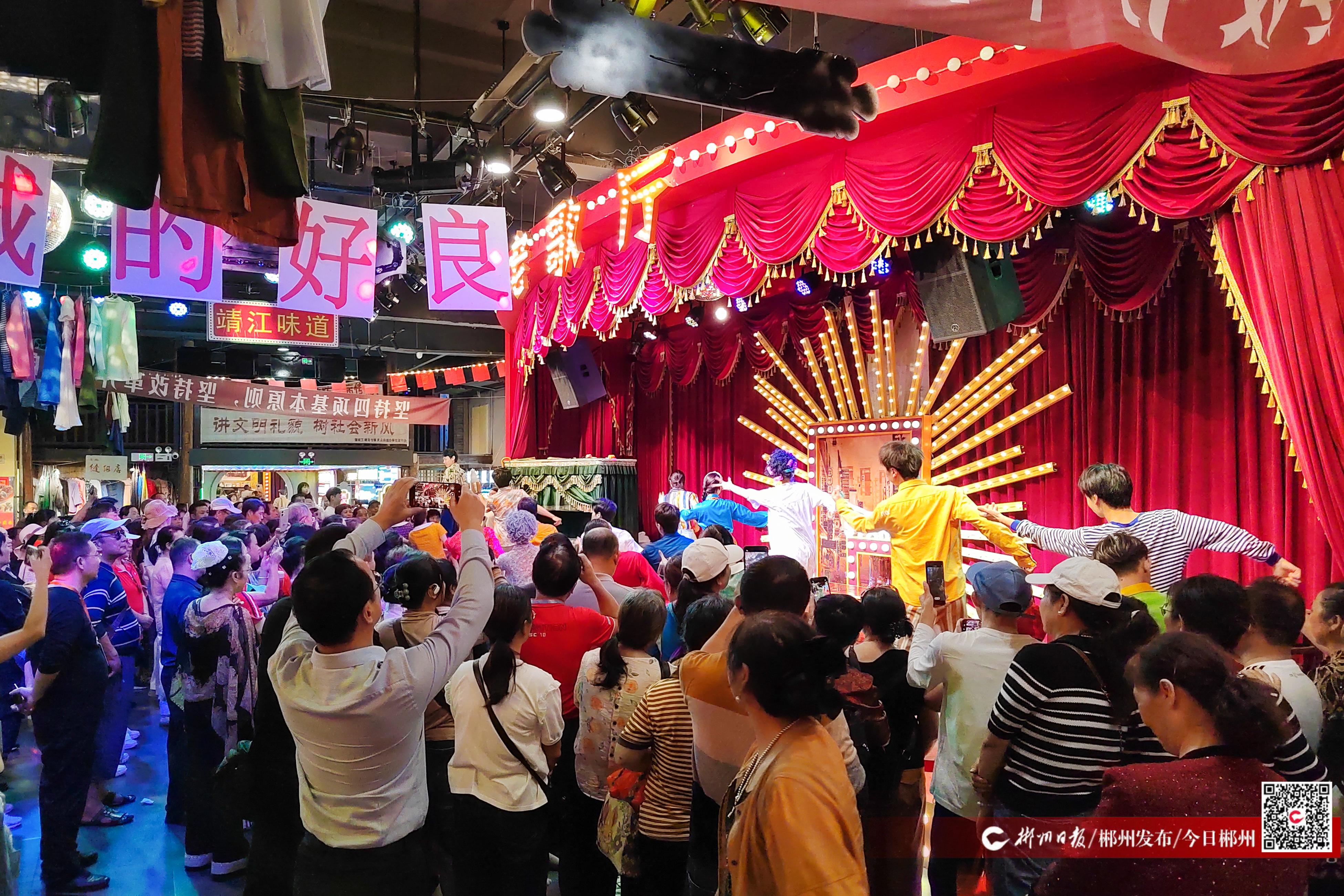 转角之间,“媒婆天团”以诙谐互动引人捧腹;《白毛女》的经典片段催人泪下;湘剧变脸与喷火绝活掀起阵阵惊呼。演艺不再局限于固定舞台,而是融入街巷的各个角落,形成“一步一戏,转角遇艺”的沉浸体验。