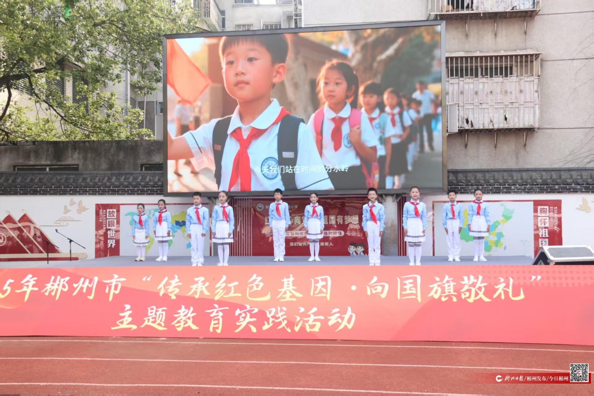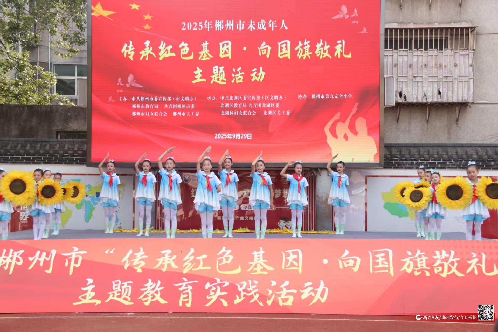9月29日,在中华人民共和国即将迎来76周年华诞之际,2025年郴州市未成年人“传承红色基因・向国旗敬礼”主题活动在郴州市第九完全小学举行。