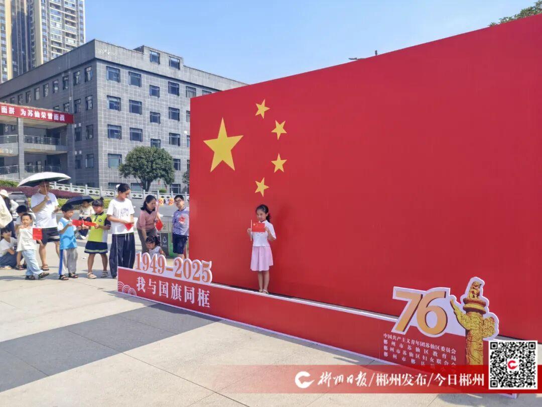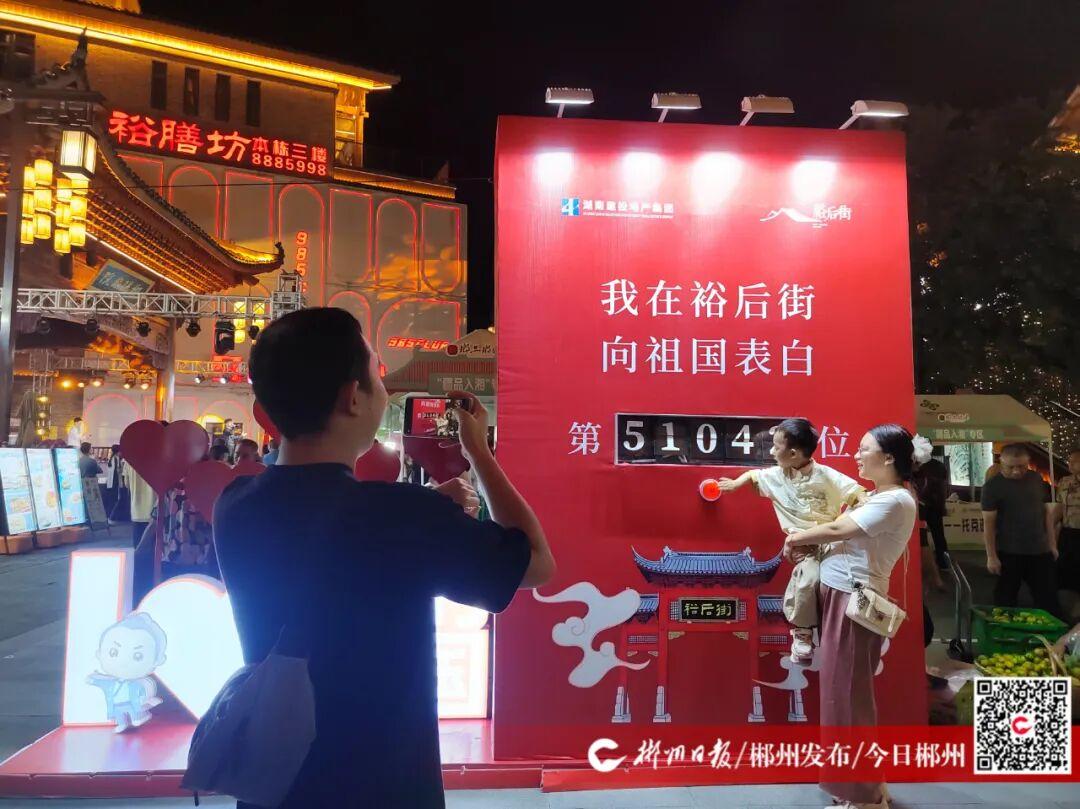 山间的歌声还在回荡,郴州城区的“中国红”早已将喜庆氛围拉满。在裕后街,“我与国旗同框”打卡点前排起了长队。工作人员递出的小国旗、爱国贴纸,成了最抢手的“国庆限定礼物”。