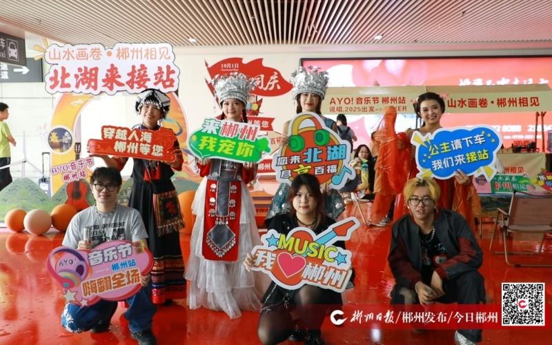2025年国庆假期恰逢中秋,郴州迎来返乡与旅游客流高峰。为充分展现城市热情好客的形象,北湖区于郴州西站出站口策划组织了“山水画卷·郴州相见——北湖来接站”主题活动,通过沉浸式接站体验,让游客在抵达第一时间即感受到“您来北湖 尽享百福”的温馨氛围。