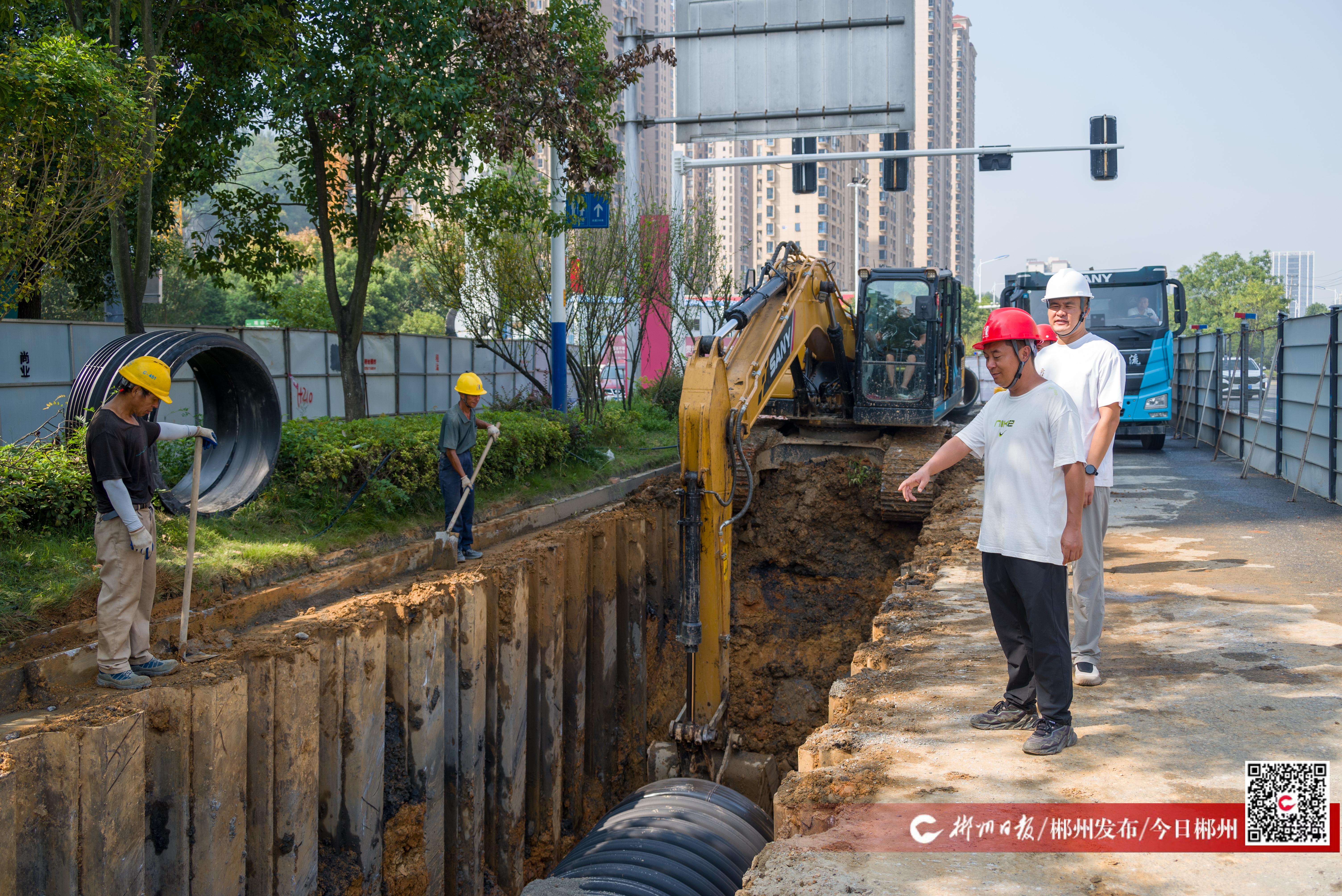 作为项目总工,李若兵每天要从早上七点半忙到晚上八点多。虽然家就在不远的资兴,但他长期住在项目部。“工程上的事一刻也离不开人。”他回忆道,在滨河路口施工时,地下管线错综复杂,他们只能人工配合挖机,一层一层小心翼翼地开挖。还有一次凌晨暴雨,雨水把管材和围挡冲到了路口,他连夜赶到现场组织抢险。正是这些随时可能出现的突发状况,让他必须时刻守在项目一线。