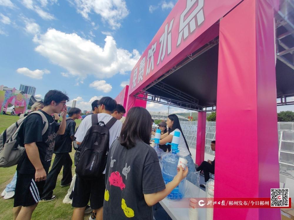 10月3日,“2025AYO!音乐节郴州站”在郴州国际会展中心热情开唱。当天天气晴朗,气温炎热,音乐节现场,设有水吧可购买水和饮料,还设有多处免费补水点,为乐迷准备了充足的桶装饮用水以供自行取用。