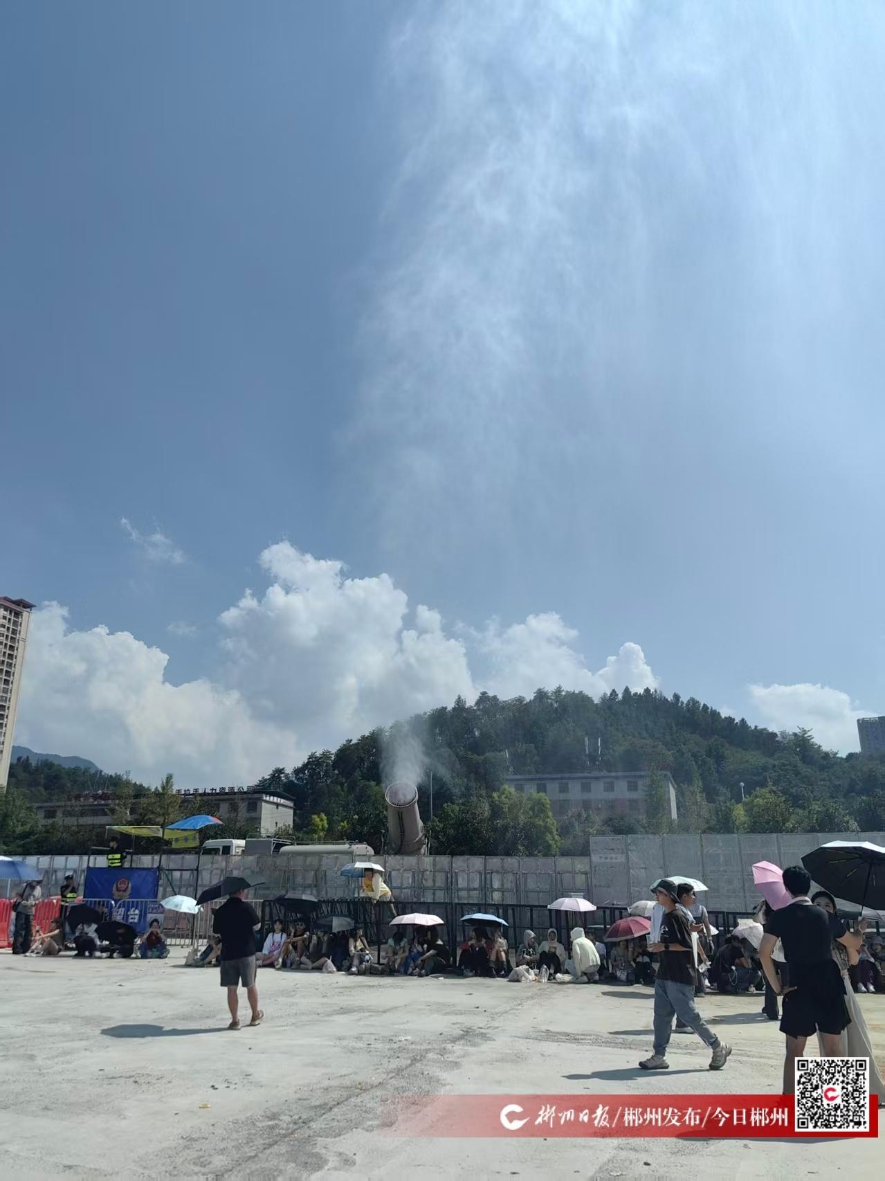 10月4日,烈日下的“AYO!音乐节”现场,十台洒水车在周边道路循环洒水降温,四台雾炮车正向场内喷洒细密水雾。水雾在阳光下划出彩虹般的弧线,为情绪高涨的乐迷们带来阵阵清凉,成为这场音乐狂欢中最贴心的“降温装置”。
