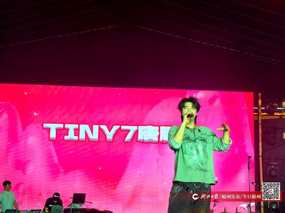 10月4日晚,2025AYO!音乐节郴州站现场气氛热烈。新生代说唱歌手TINY7(唐鹏涛)成长于福建,但他的母亲是湖南郴州临武人,此次音乐节对他而言,是一次回到血脉相连的故乡的深情之旅。作为备受瞩目的新生代音乐人,他的作品《浆果》《零距离的思念》等已成为多个短视频平台的爆款背景音乐,传唱度极高。