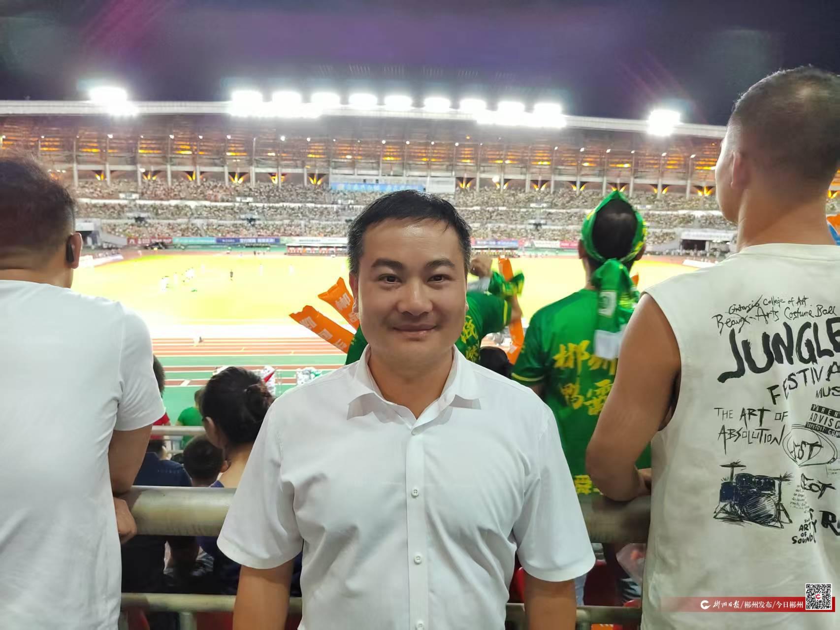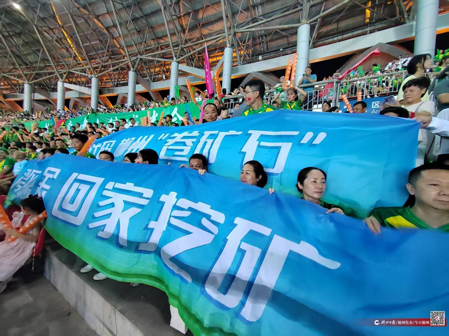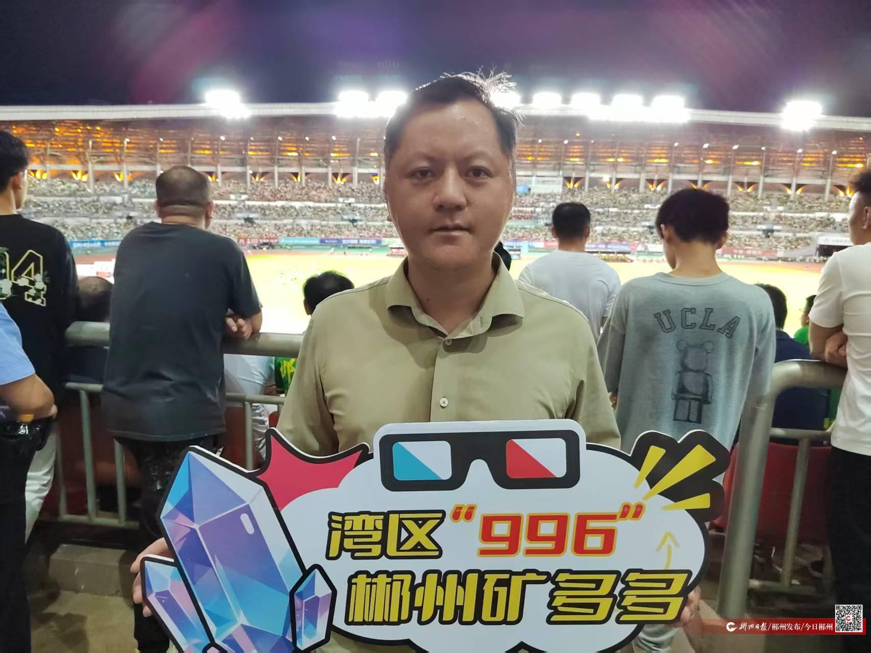 在助威人群中,不少人特意从大湾区赶回郴州观看比赛的。从事环保行业的唐淼是土生土长的郴州安仁人,现居东莞,10月4日便专程从东莞启程返乡。“我一直关注郴州队的比赛,之前只能看直播,这次终于能到现场感受氛围,特别激动。”唐淼说,足球是他的爱好,而为家乡球队助威,更让这份热爱多了一份乡情牵挂。