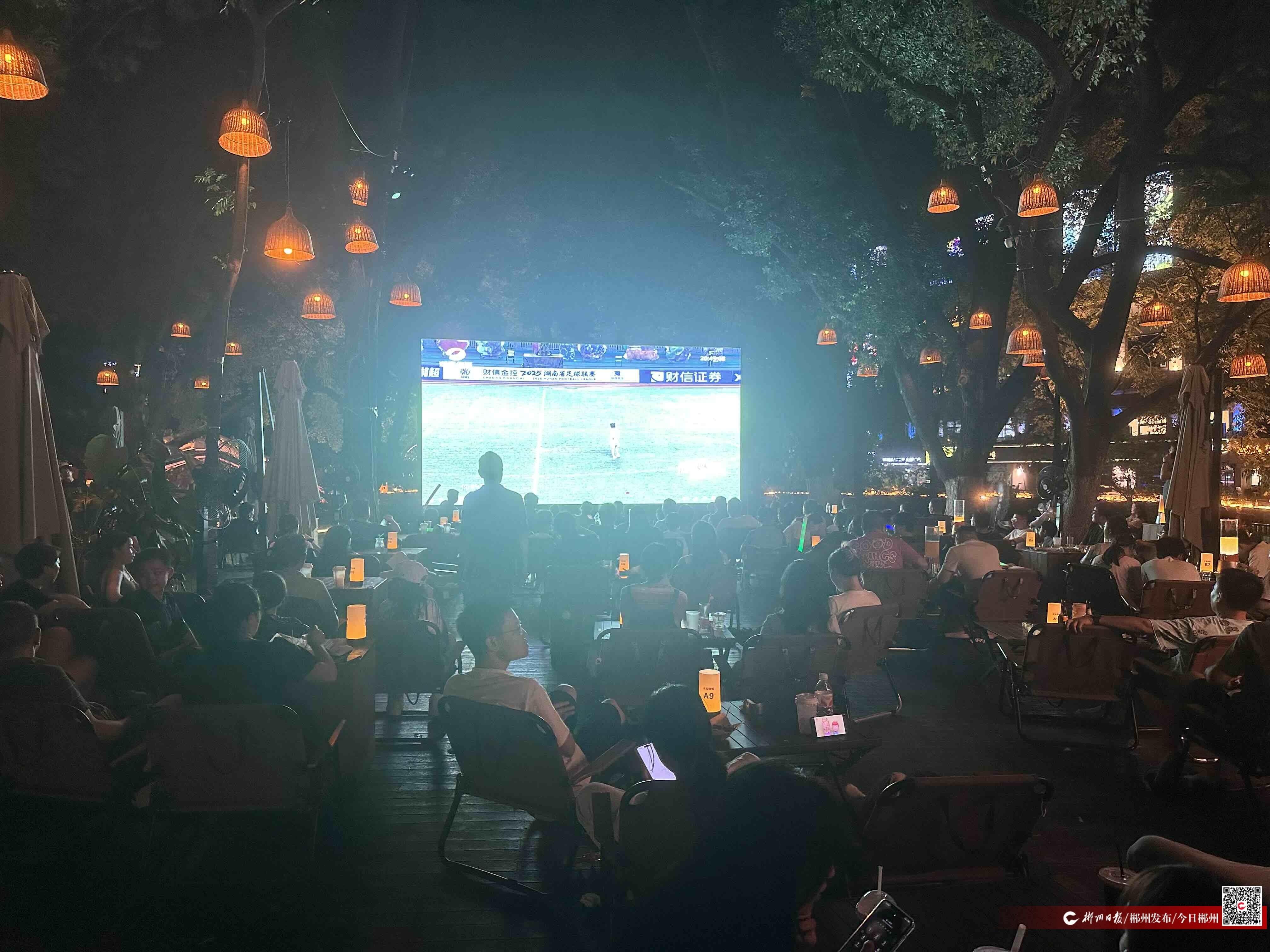 10月5日晚,“湘超”联赛第四轮郴州队主场迎战客场株洲队。北湖水月洲巨大的大屏幕前,汇聚了从四面八方赶来的球迷,这里作为联赛第二现场,成为了今夜最热闹的狂欢地。
