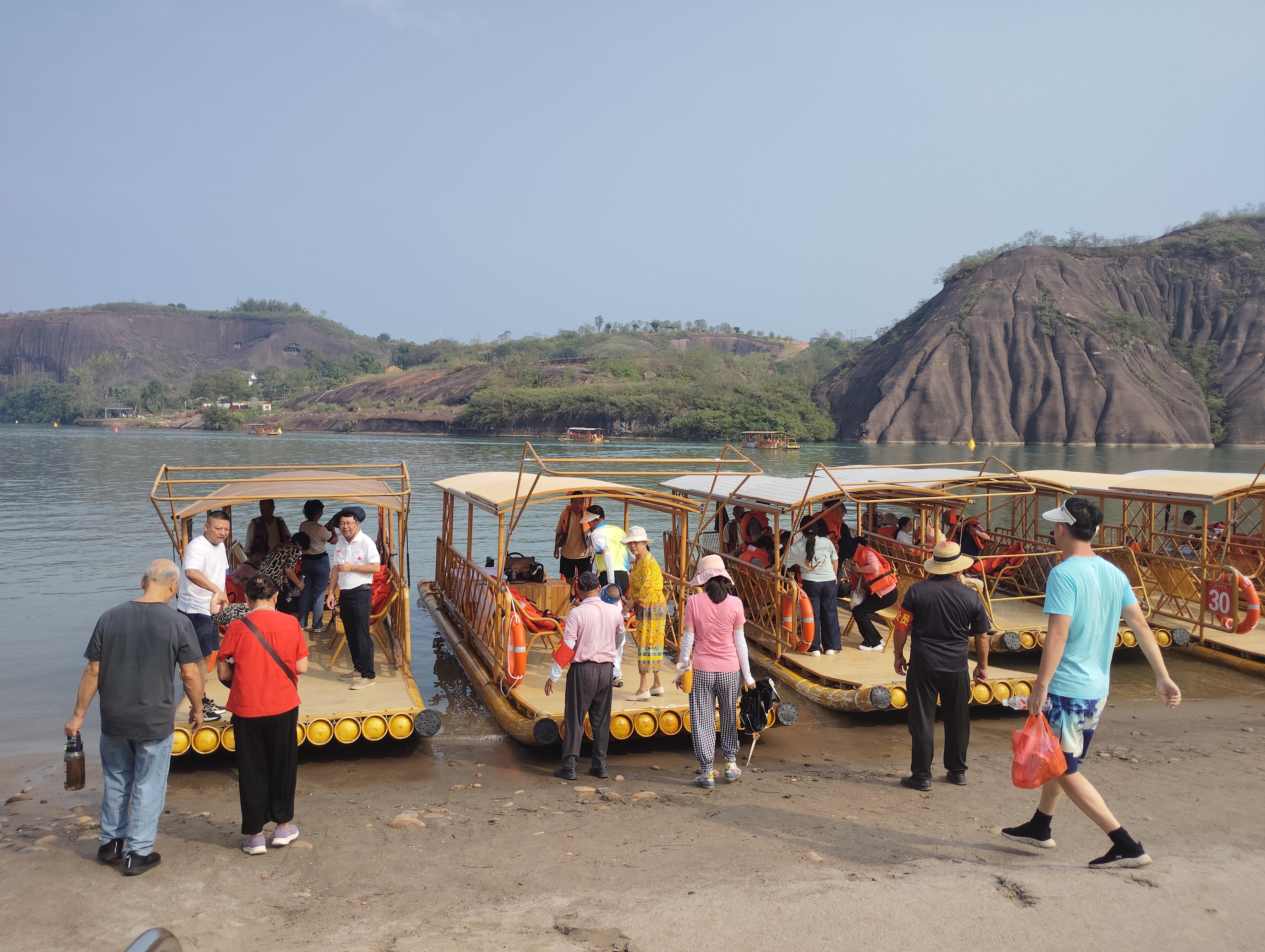 游客乘坐竹筏游览飞天山翠江(通讯员 贺茂峰 摄)