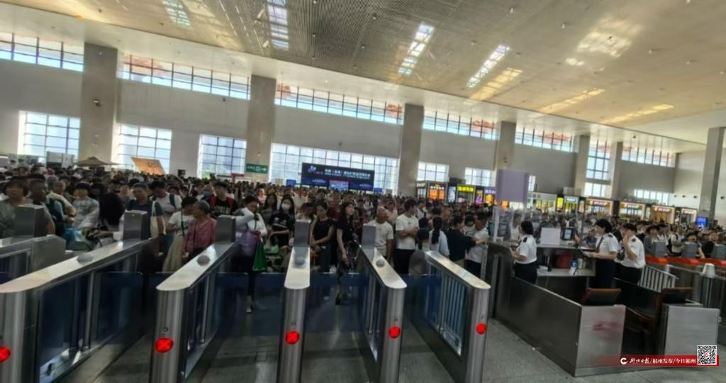10月8日,国庆中秋假期返程客流迎来峰值,郴州西站当日旅客发送量突破4.6万人次大关。以46751人次的实绩刷新车站历史纪录,同时跻身湖南省内车站单日发送量第三名,平稳高效完成假期返程运输“大考”。