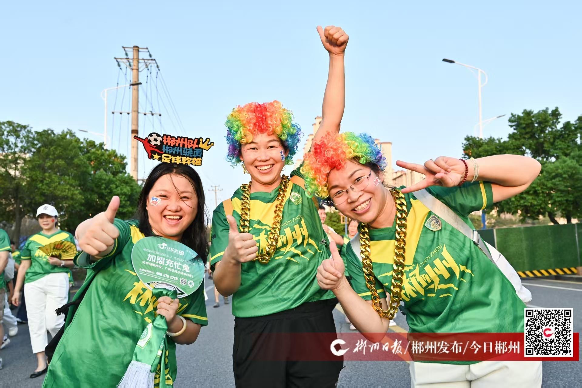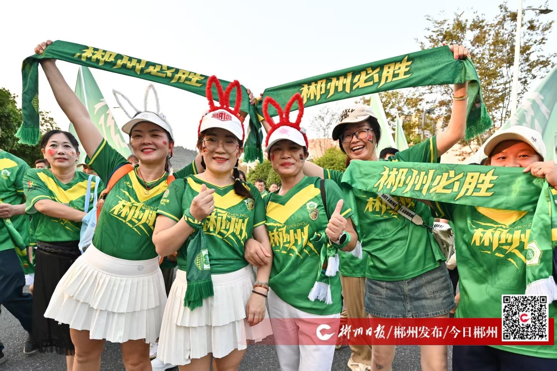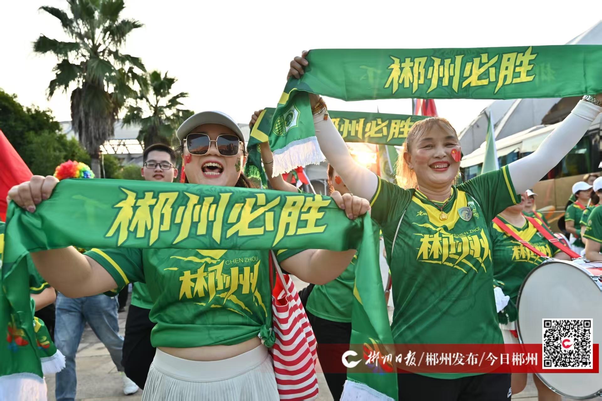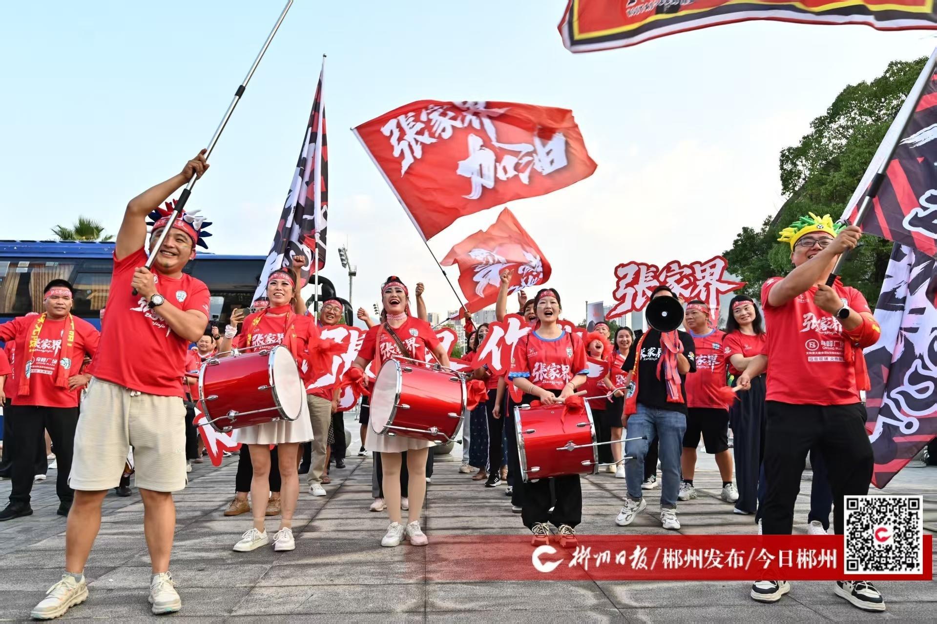 “欢迎张家界,欢迎张家界!”……10月11日17时许,郴州市体育中心东门被热情的球迷们包围:整齐的鼓声、振奋人心的口号、迎风飘扬的旗帜……人声鼎沸间,郴州虎啸山林球迷会正在以极大的热情欢迎远道而来的张家界队球迷。欢迎仪式现场,两队一绿一红、对比鲜亮的球迷服成为最亮丽的风景线。