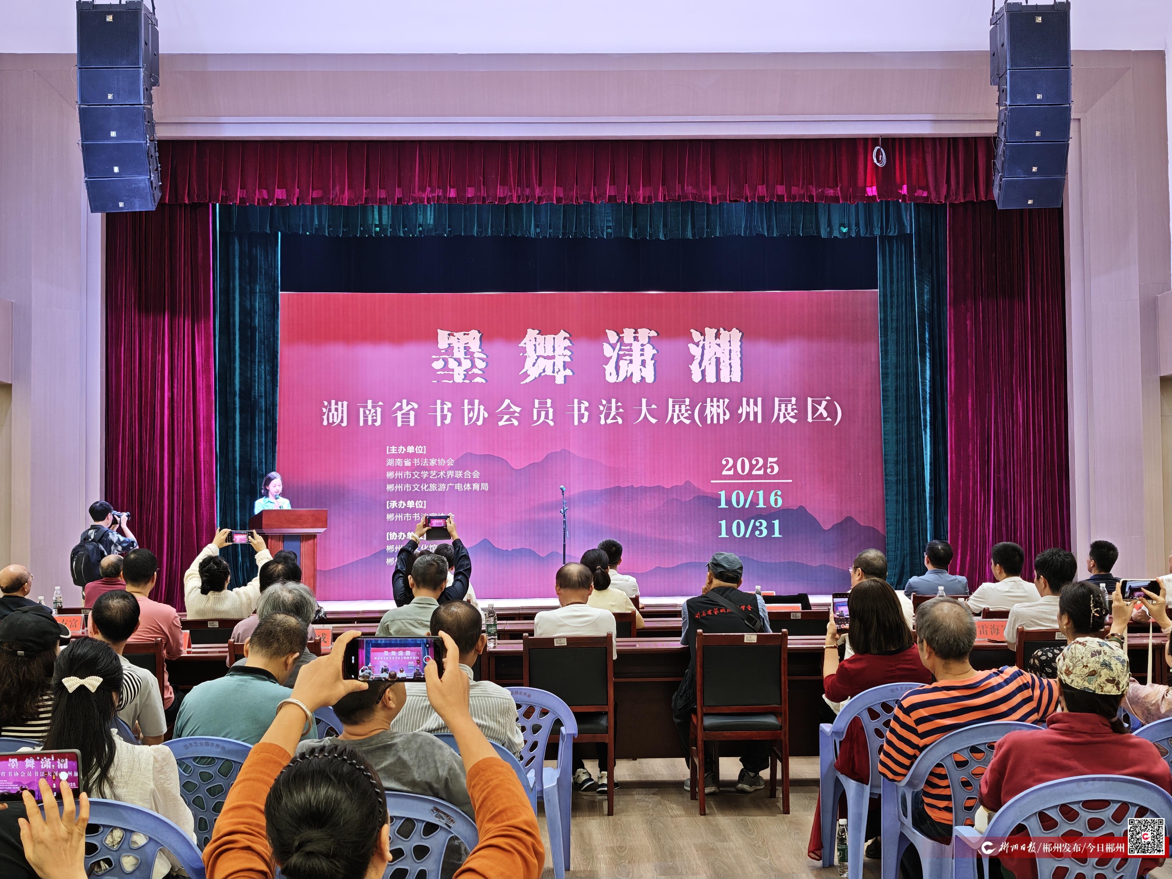 10月16日,“墨舞潇湘”湖南省书协会员书法大展(郴州展区)在市文化馆启幕。
