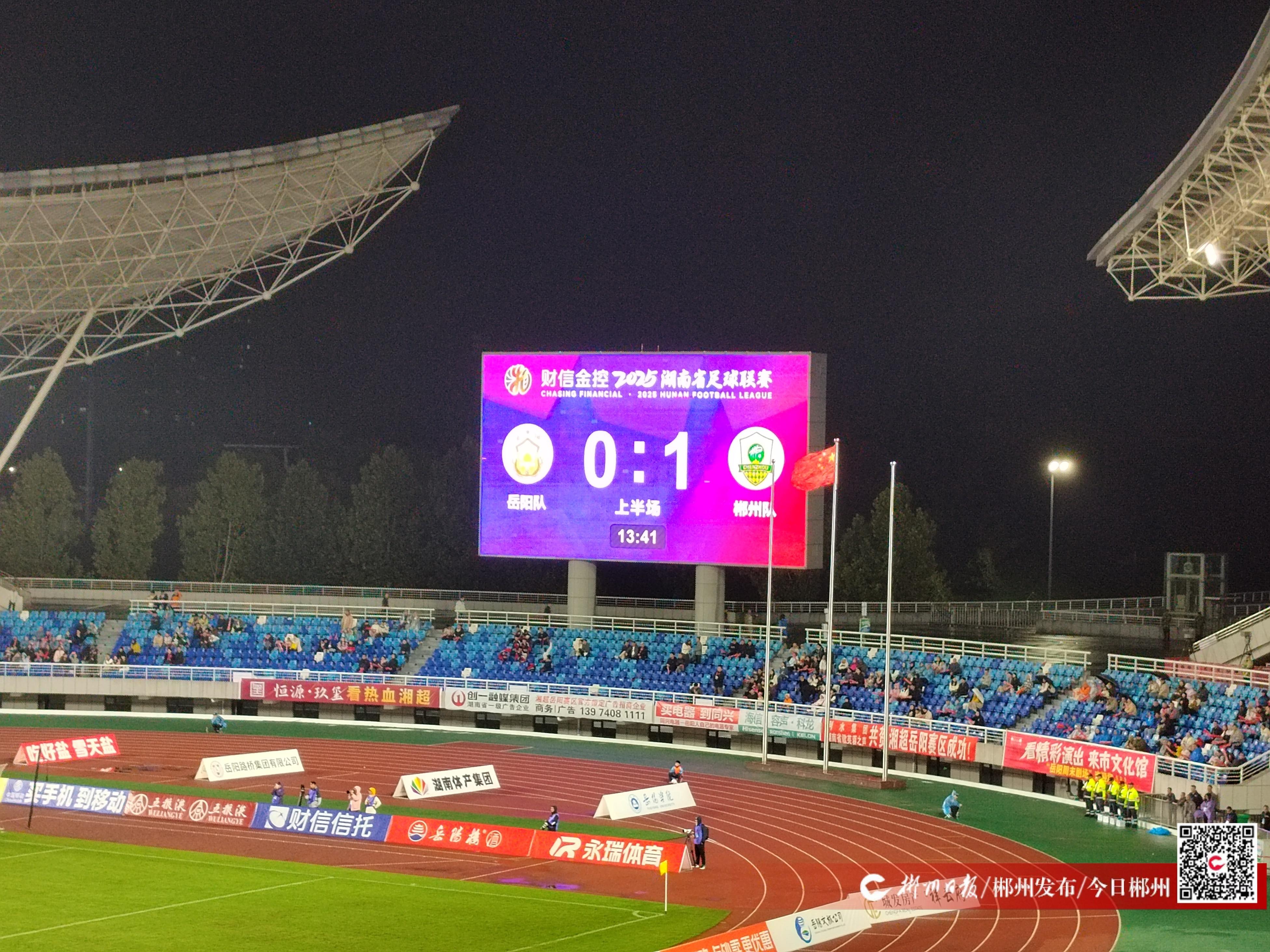 目前,比分郴州队1:0岳阳队,比赛仍在激烈进行中,让我们继续为郴州队加油!