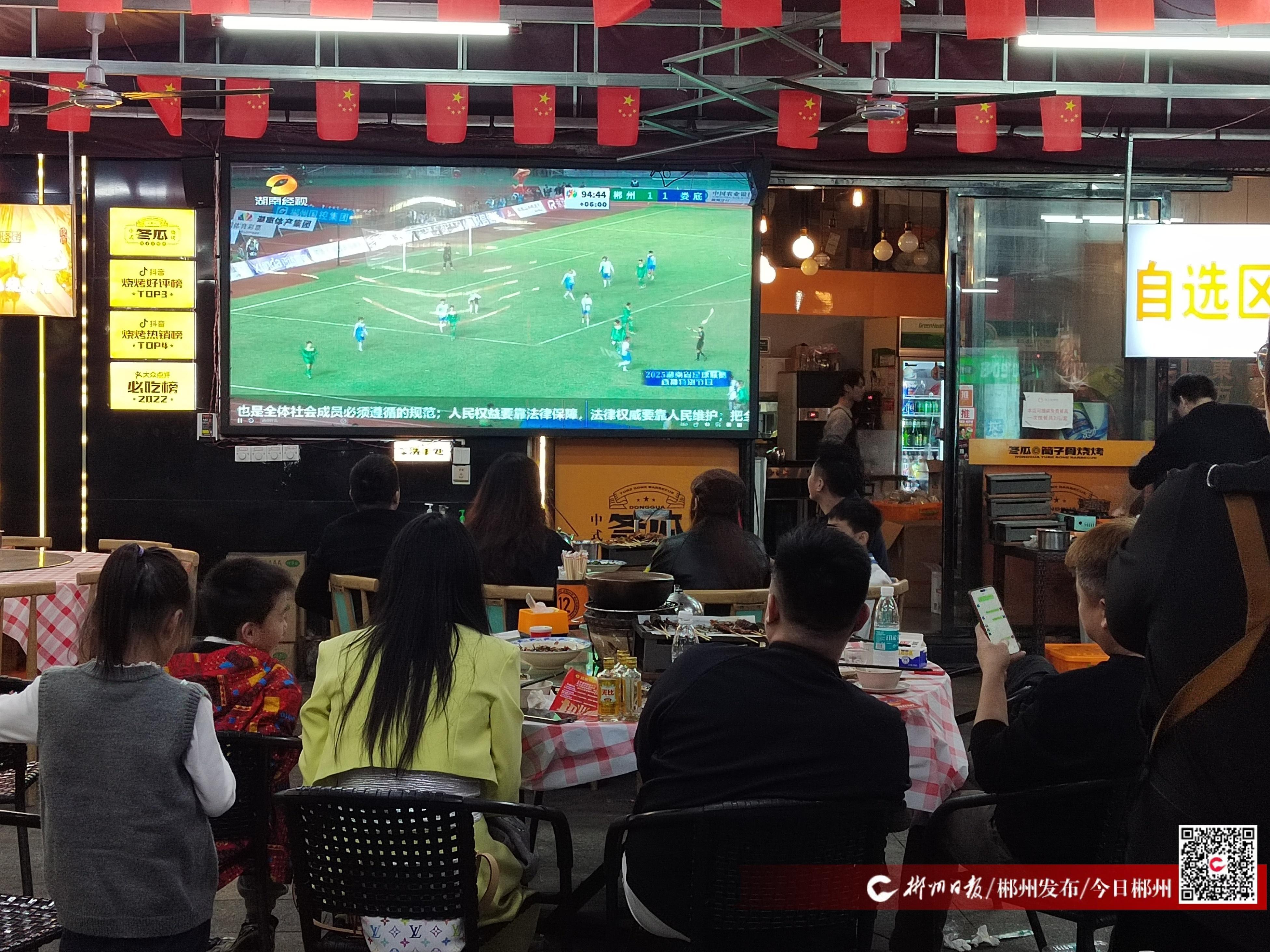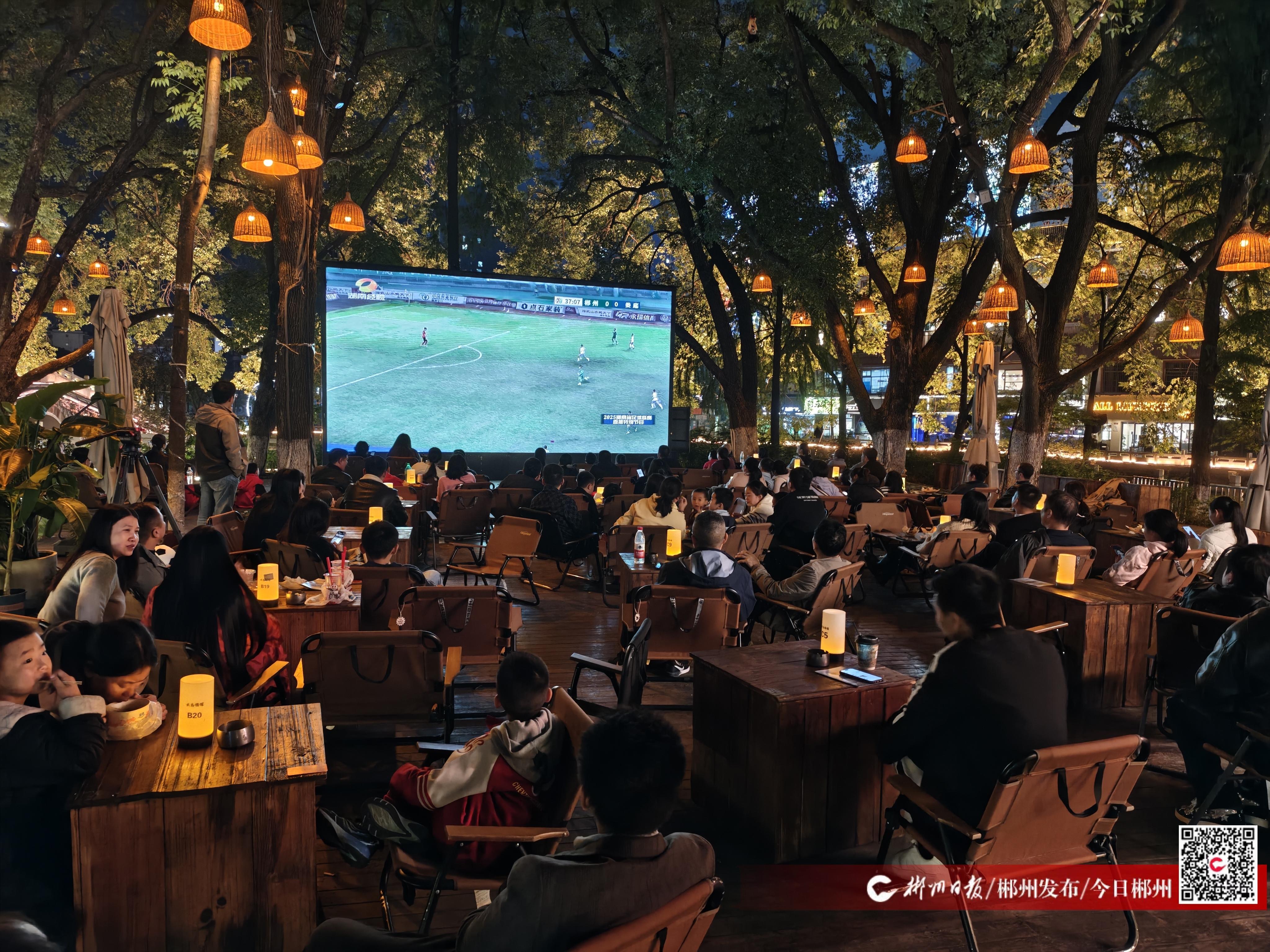 当晚,欢乐海岸美食街与贝壳夜市人头攒动,作为“第二现场”的核心区域,这里多家餐饮店同步直播赛事,座无虚席。美食的香气、啤酒的泡沫与足球的热情相互交织,点燃了市民的观赛激情,也让“郴州有矿”的活力与“郴州有爱”的温度,融入城市夜间经济的脉搏,绘出一幅消费兴旺的生动图景。