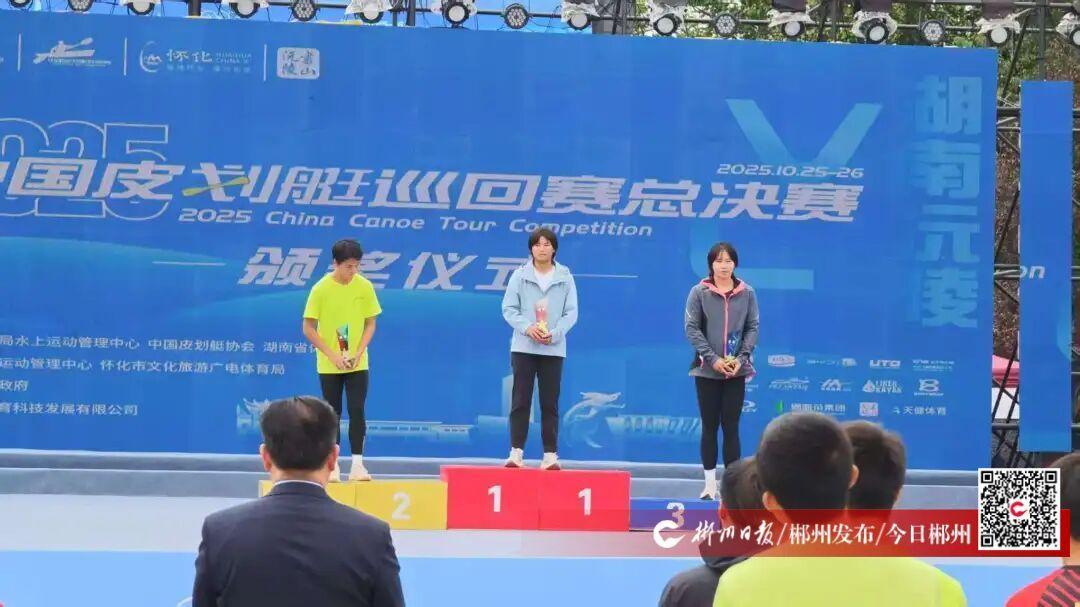 10月26日,2025中国皮划艇巡回赛年度总决赛在湖南沅陵落幕。在沅水与酉水交汇处的“最美水上赛道”上,来自郴州的选手陈俊敏、李婷婷顶住全国顶尖选手的冲击,以惊艳表现斩获3枚金牌。其中,陈俊敏包揽男子单人皮艇500米直道竞速与15公里长距离耐力赛双冠,李婷婷则将专业组女子单人划艇金牌收入囊中,尽显郴州健儿的拼搏本色。