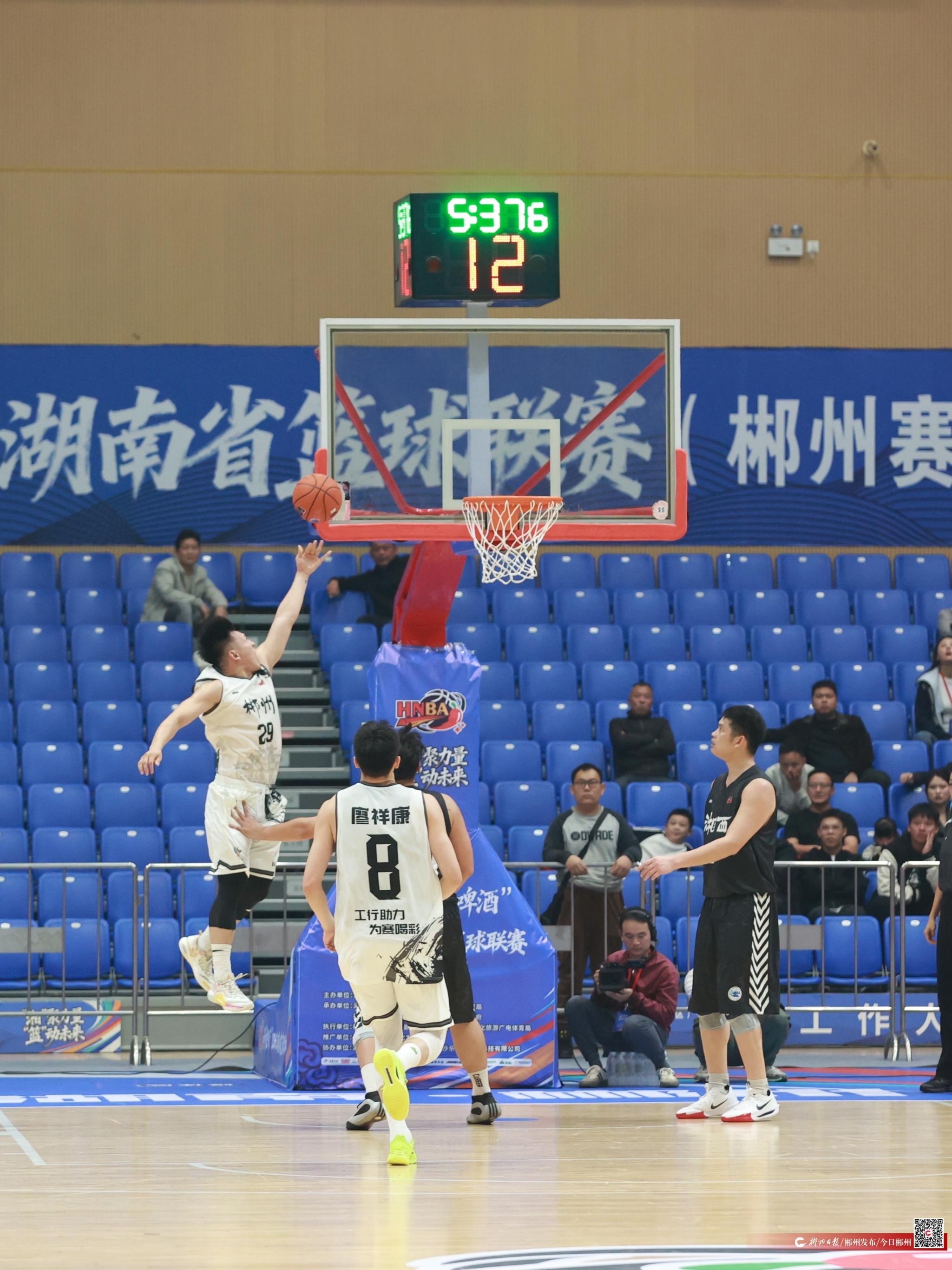比赛开始,郴州队8号廖祥康率先灌篮得分。此后,郴州队凭借配合密切和多样的进攻手段,奉献多次精彩三分和灌篮,比分持续领先。第二节结束,郴州队以50:34领先。第三节后,郴州队进攻势头不减、防守强度不降,郴州队比分优势不断扩大。最终郴州队以113:67赢得比赛,29号丁超取得全场最高的32分。