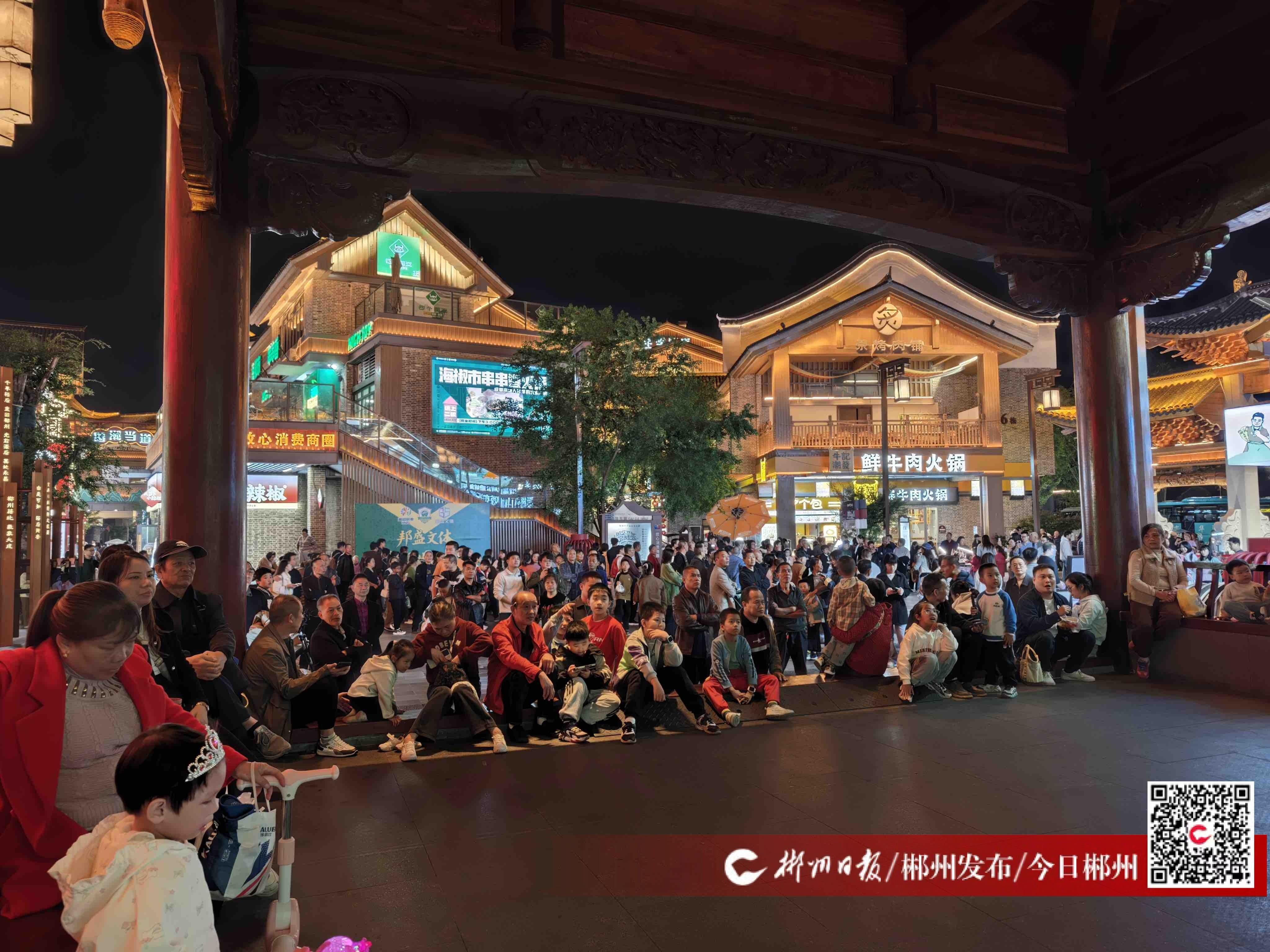 当足球的激情注入城市的历史文脉,观赛便升华为一种独特的文化体验。11月1日晚,郴州裕后街流光溢彩,“第二现场”之一的裕后街,郴阳戏院和牌坊广场两块大屏幕实时转播着“湘超”联赛郴州队客场对阵湘潭队的赛事。
