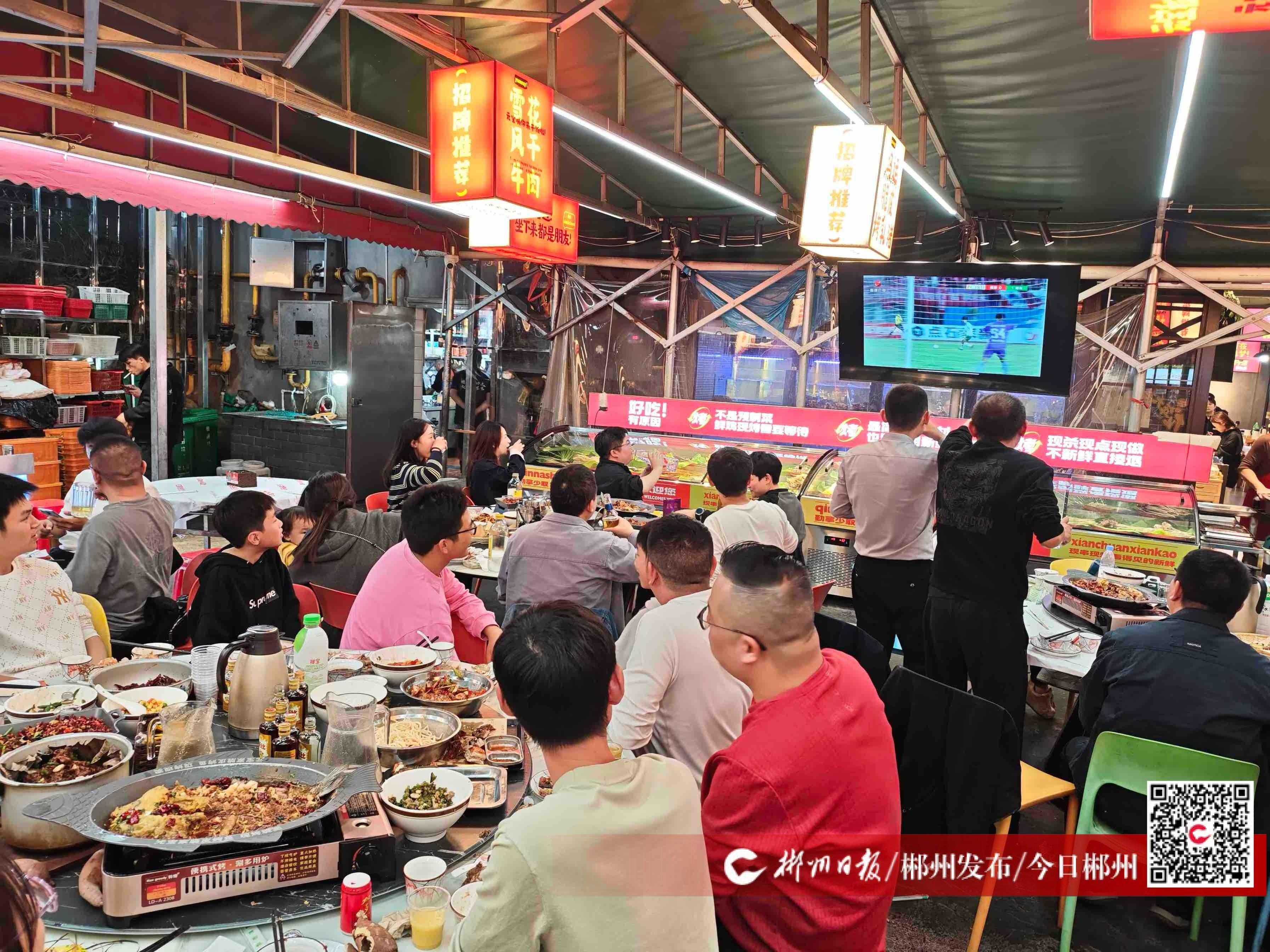 筒子骨烧烤店负责人冯维介绍,周末球迷凭郴州队球服和门票来店消费可享88折优惠,店里还提前备好了高清屏幕和稳定网络保障观赛体验。“‘湘超’带动了我们店里的消费,好多没买到现场票的郴州球迷们,都会来我们这里看比赛,客流量多了,我们生意就好做了。”冯维笑着说。