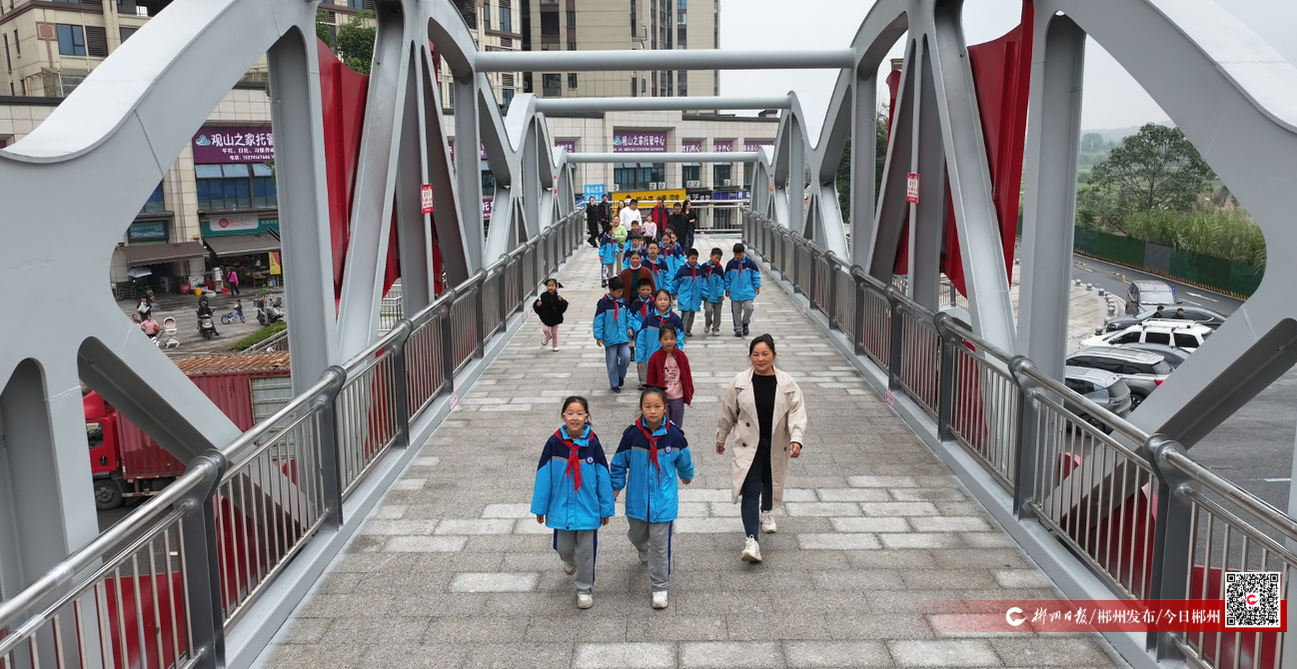 11月1日,苏仙区观山路人行天桥正式启用,有效解决了观山大道交通繁忙路段行人过街的安全问题,为周边师生和居民出行筑起一道坚固的“安全防线”。