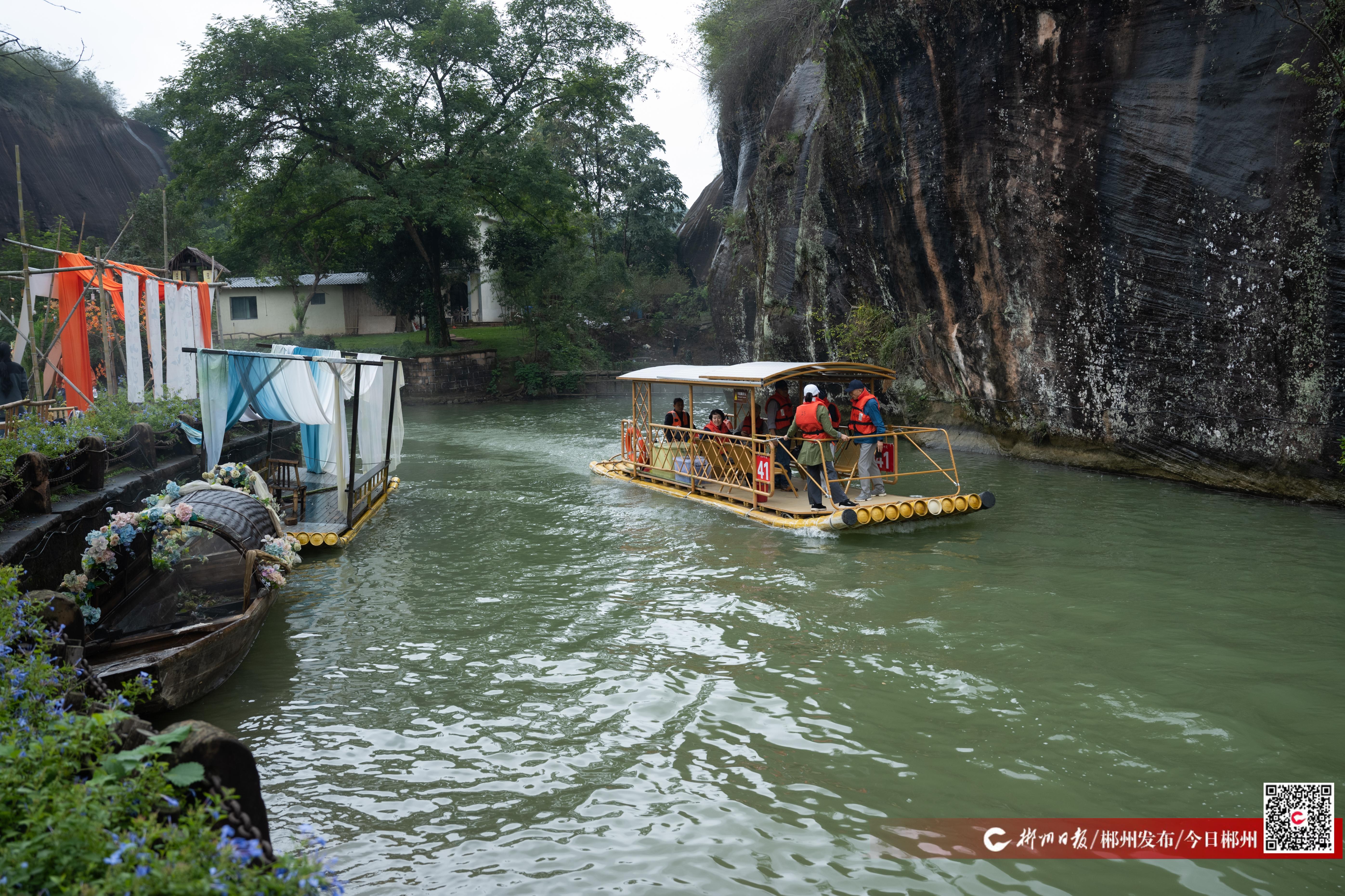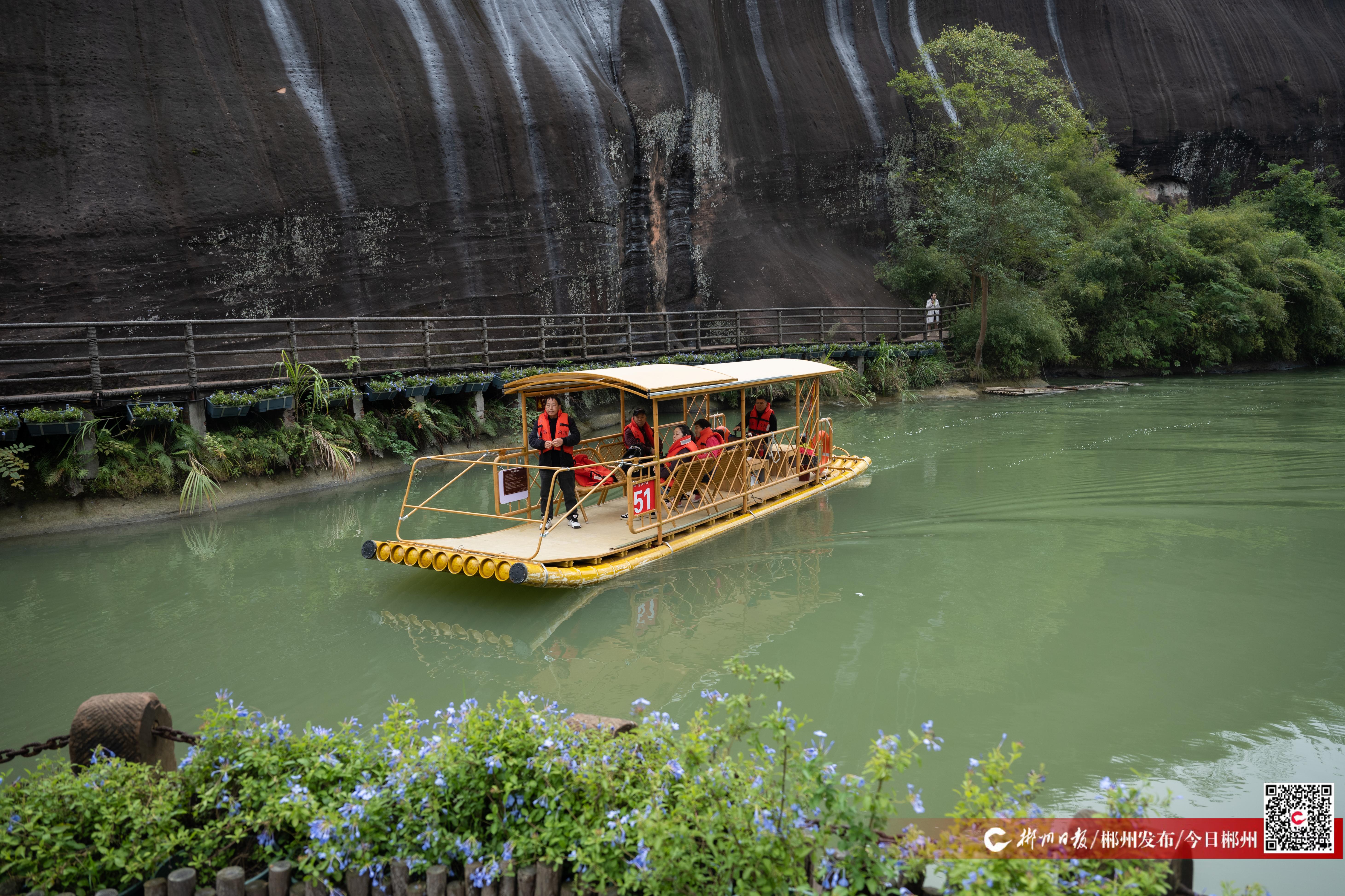 11月11日,游客乘竹筏穿行于苏仙区九龙水寨的碧水丹霞之间,尽览山水画卷。该景区位于飞天山翠江旅游区内,以16公里碧水丹霞为纽带,串联起20余处地质奇观与人文胜景,素有“九仙九龙九道弯”的美誉。自去年8月竹筏项目启动以来,九龙水寨迅速成为我市热门旅游打卡地,深受游客喜爱。