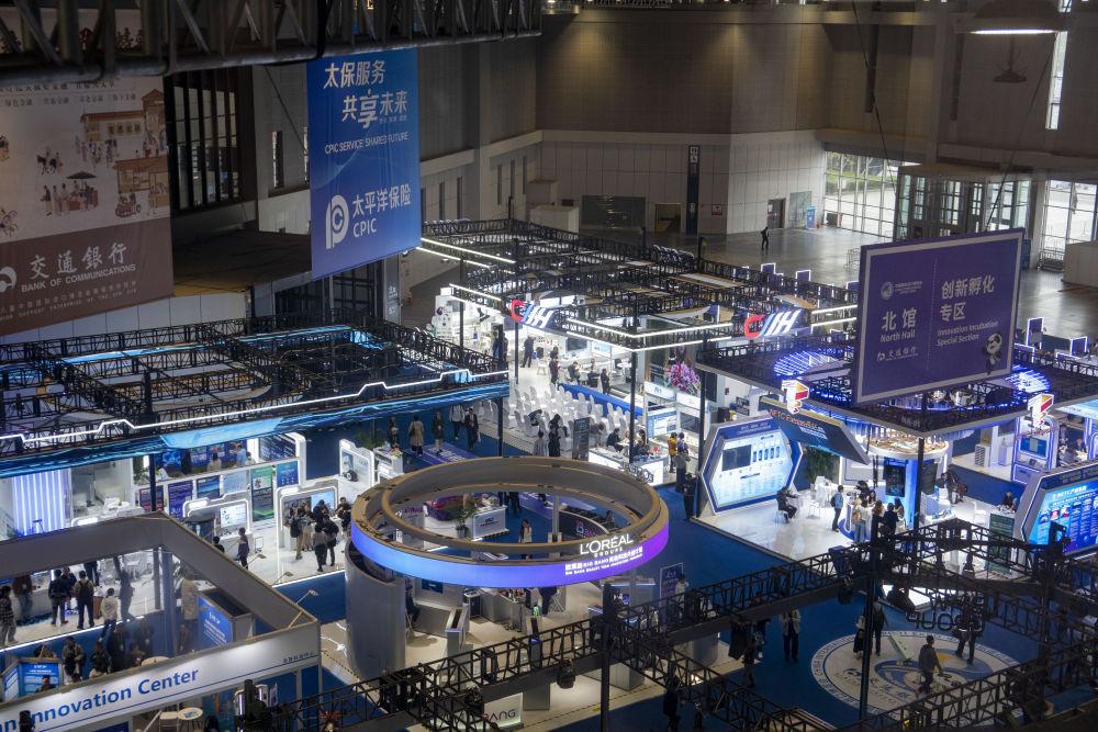 2025年11月9日拍摄的第八届进博会创新孵化专区。本届进博会创新孵化专区以“在中国,切入新赛道”为主题,为参会全球初创企业和人才共同探索开拓中国市场提供科技创新资源与合作机遇。