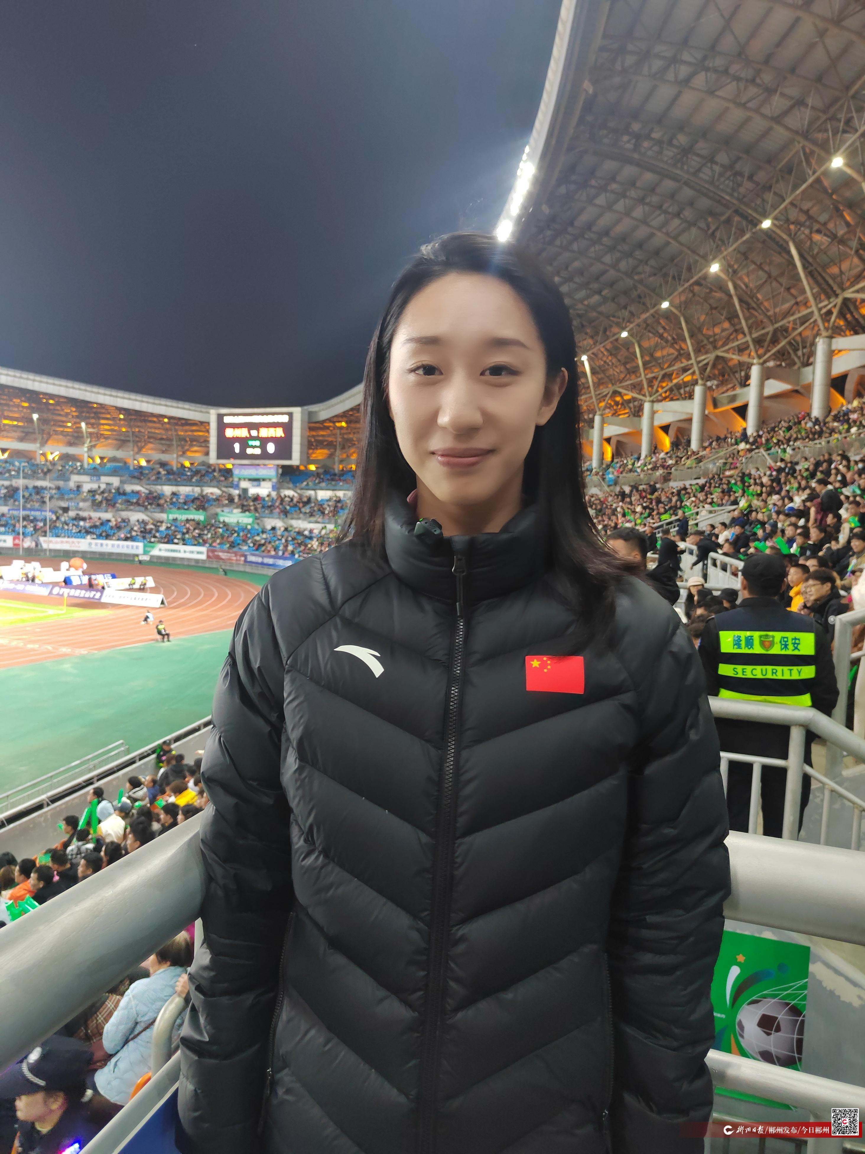 更让她惊喜的是家乡人民对体育赛事的高涨热情:“家人说‘湘超’门票一秒售罄,来到现场真正让我体会到了大家的热情!”