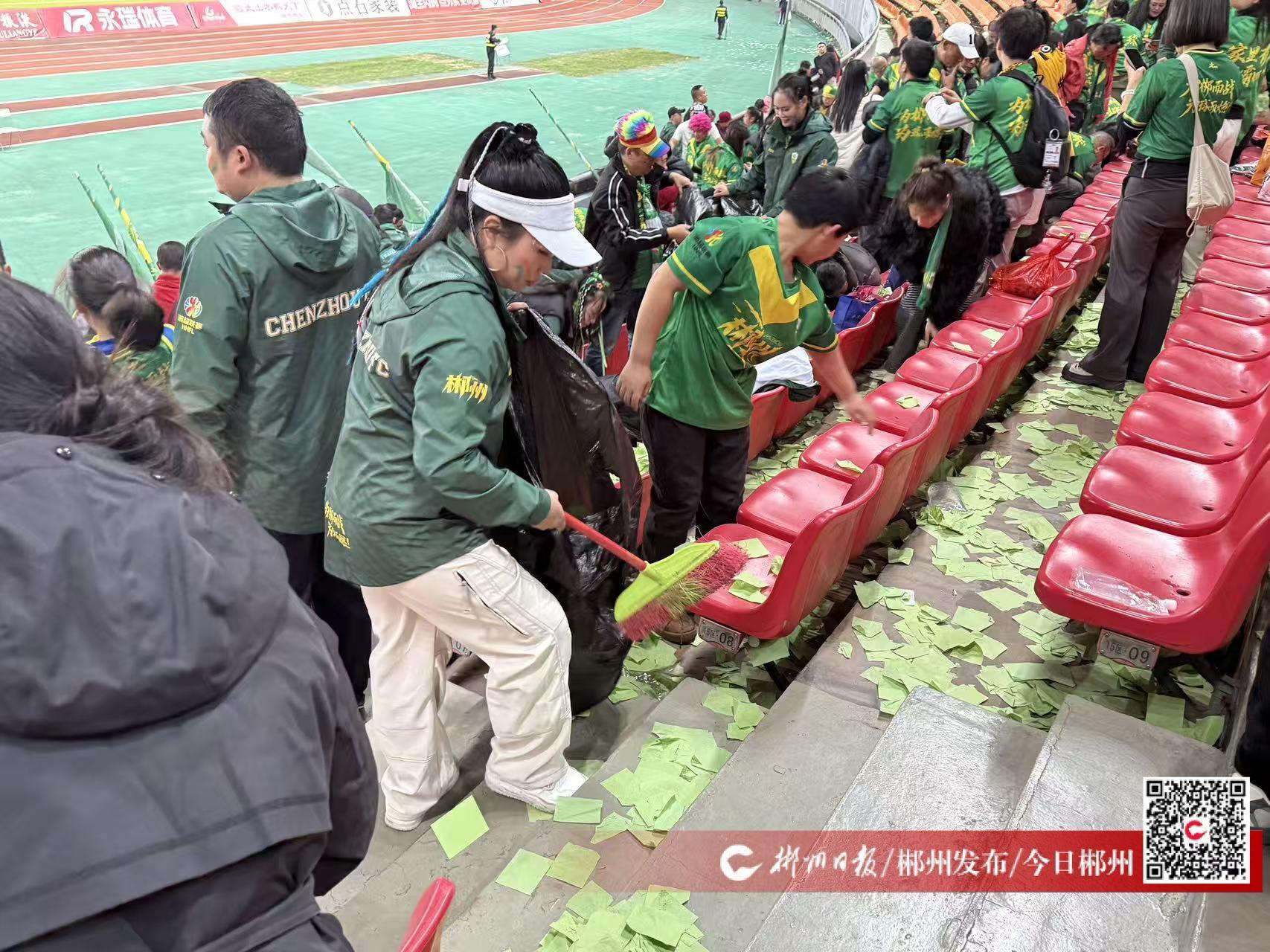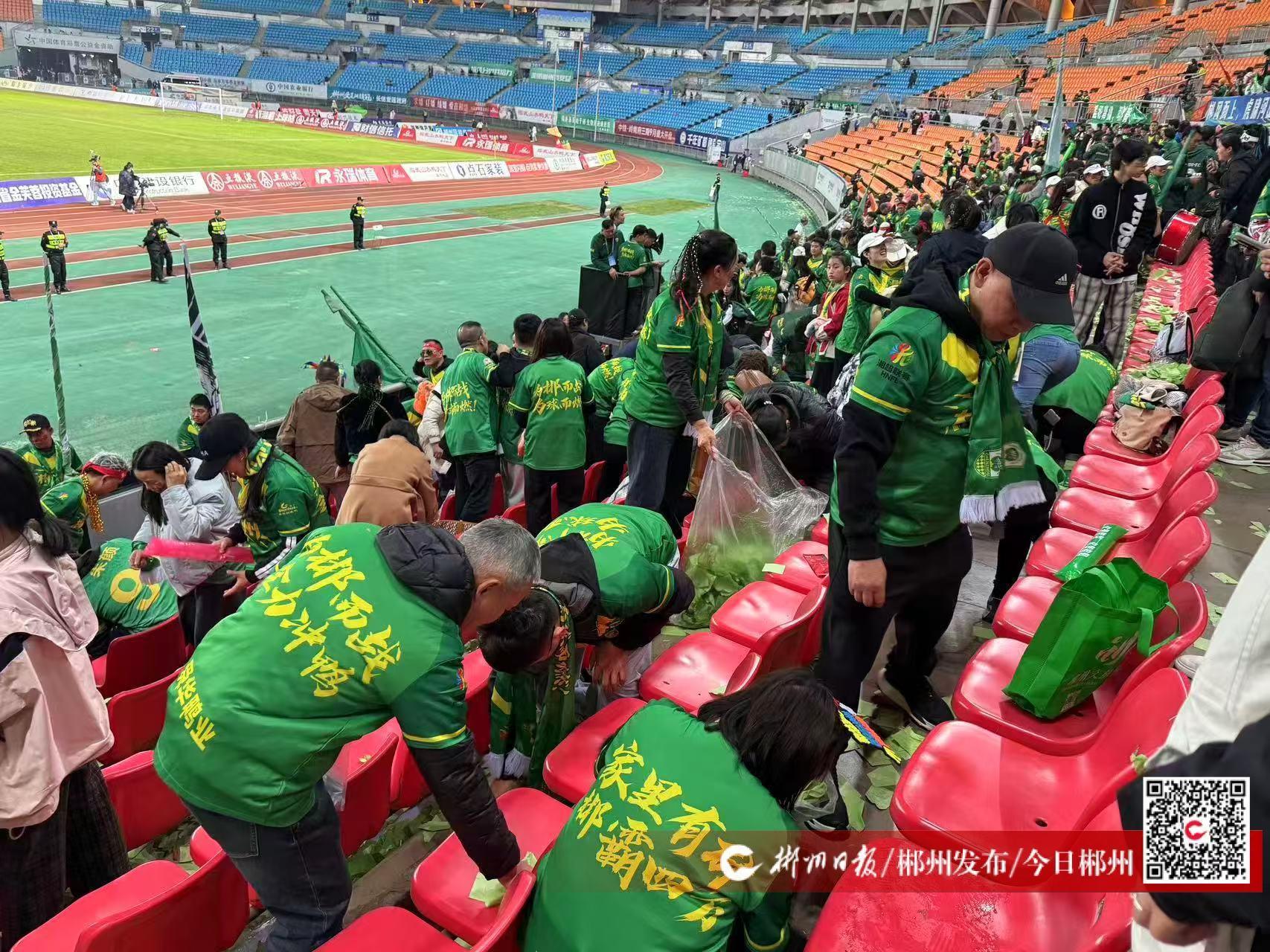 11月21日晚,“湘超”联赛郴州队坐镇主场迎战湘西队。赛场内外,从有序进场到主动护场,每一个细节都彰显着郴州文明城市的风采。