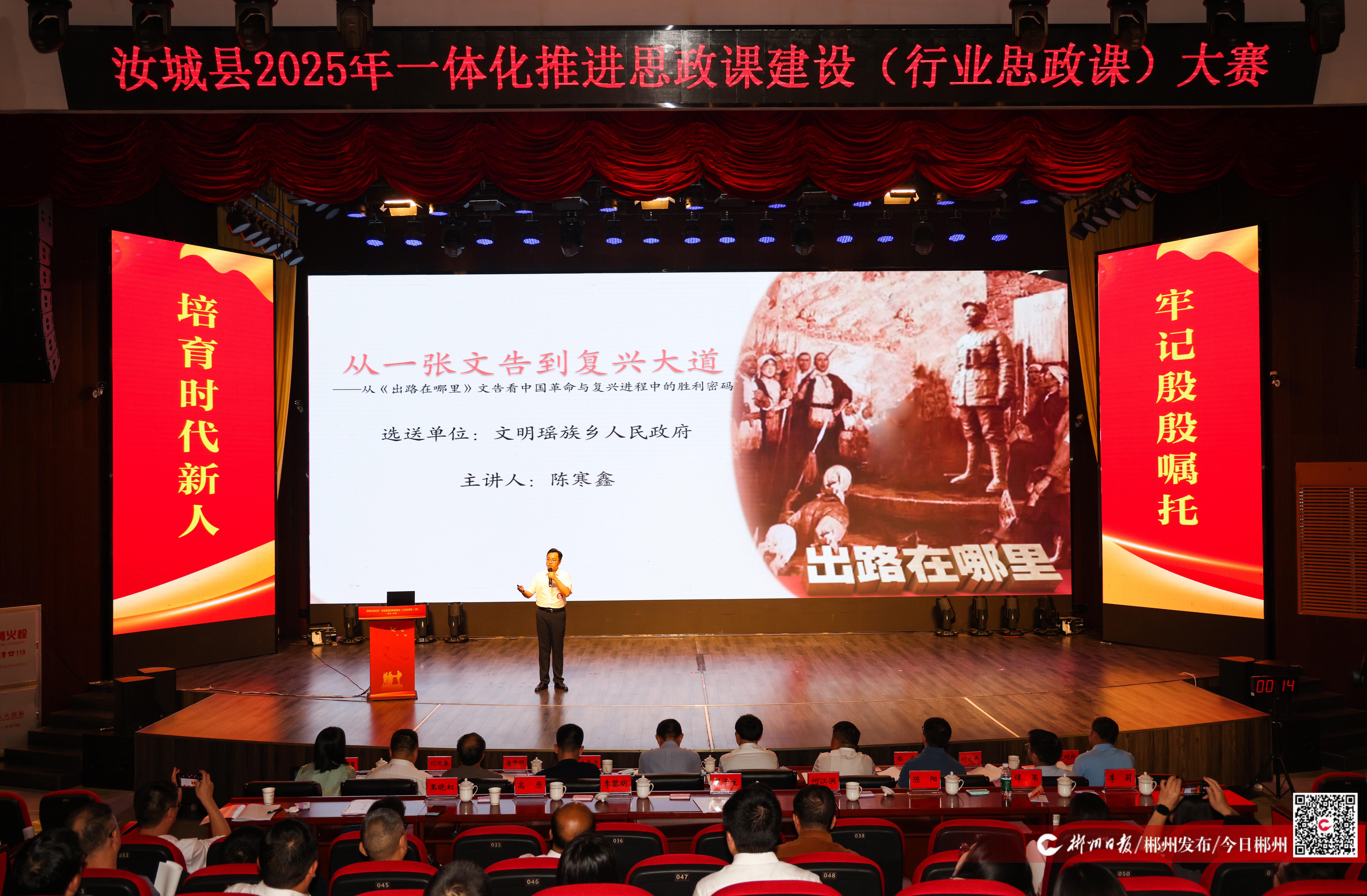 汝城县在思政课建设上坚持“四位一体”推进,以学校为主阵地,拓展行业、景点和社会“新航道”,以赛促建,推动了多领域思政课建设协同发展。学校思政课建设120人的思政课队伍,遴选10堂精品学校思政课,常态化开展“思政巡讲”活动。汇聚30多个部门单位参与,打造30堂精品行业思政课;创新举办景点微思政课大赛,匠心打造21堂精品微思政课,拓展6条精品线路和25个红色教学点,开展思政宣讲30多万人次。尤其是注重“社会性”,打磨推出12堂社会思政课,让社会人讲述社会事、社会事影响社会人,创新推进思政“小课堂”与社会“大课堂”相融合。