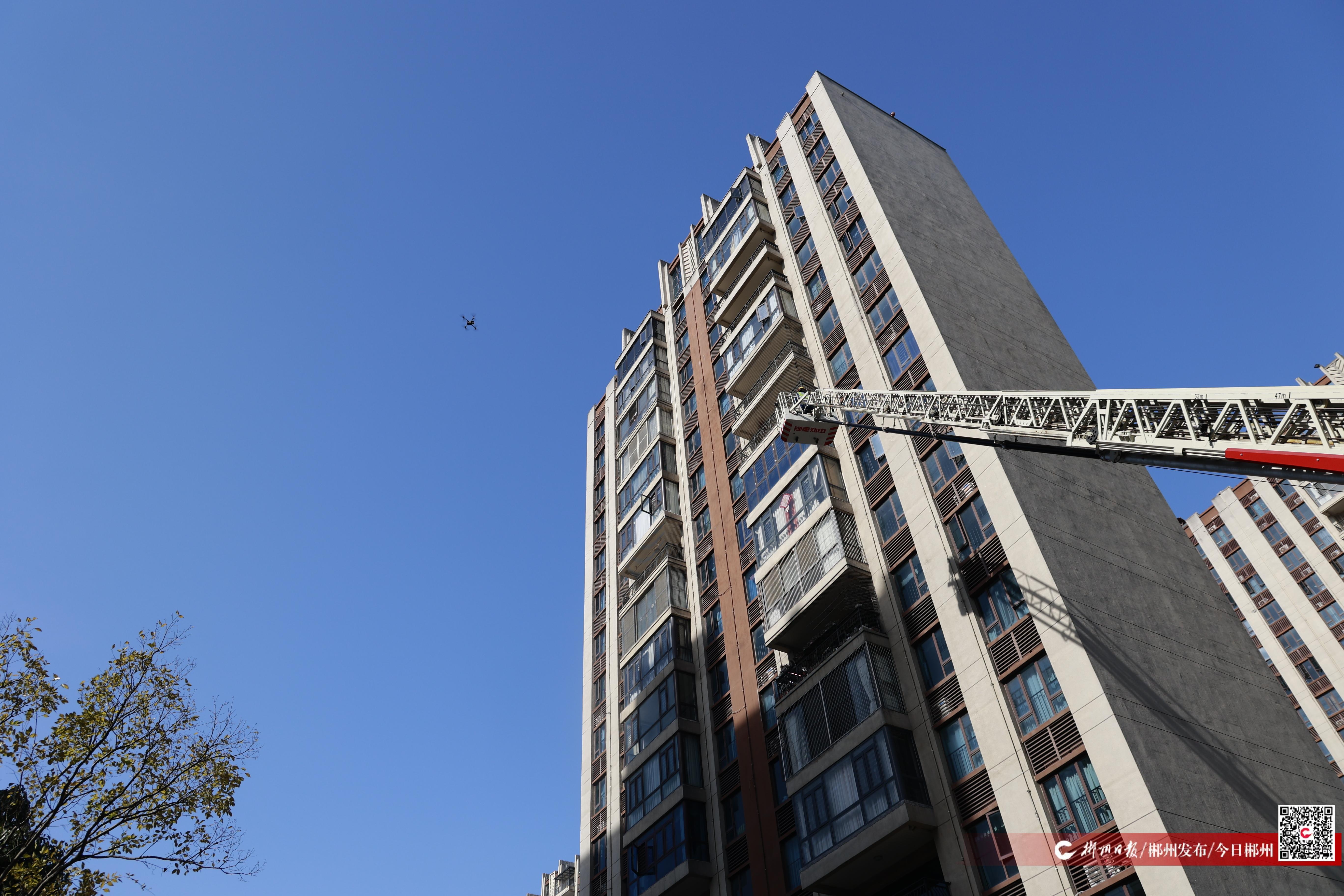 现场,消防救援人员迅速运用无人机进行火场侦查和定位,同时启用消防云梯开展快速升降救援。“我们开展此次演练,主要是为了全面提升在应对高层建筑火灾时的快速响应、科学决策和高效处置能力。”桂阳县消防救援大队新澄消防救援站副站长孙珂表示。