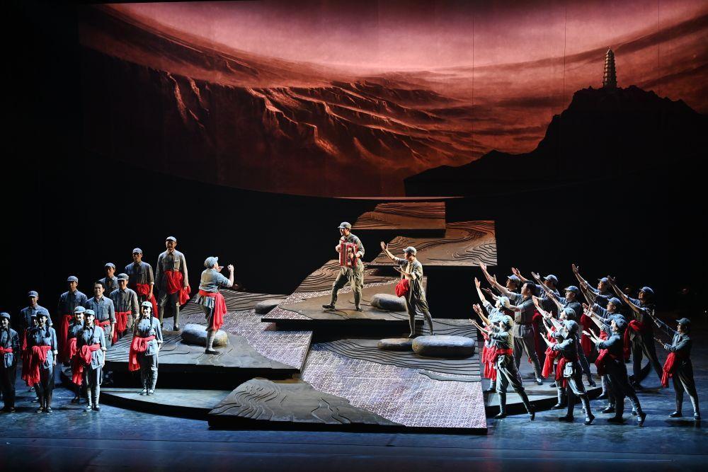 2025年7月29日,演员在陕西延安的金延安文化旅游产业园区表演红色歌舞剧《延安十三年》。近年来,延安市以“传承红色基因”为目标,采用新科技、新理念、新手段,推出多部高质量剧目。生动感人的故事情节、富有冲击力的视听效果、沉浸式的观赏体验——守正创新的表达方式让红色文化“活起来”。
